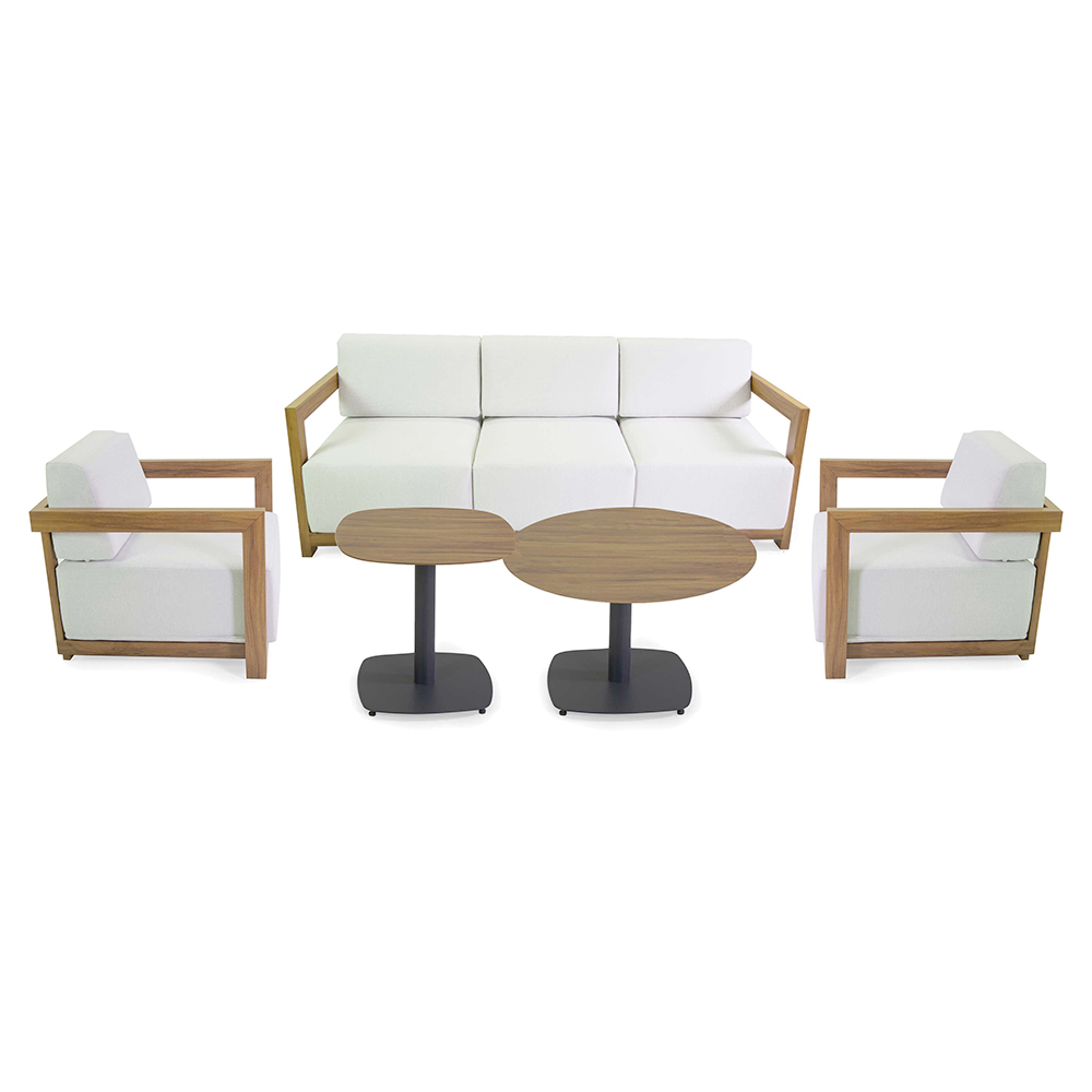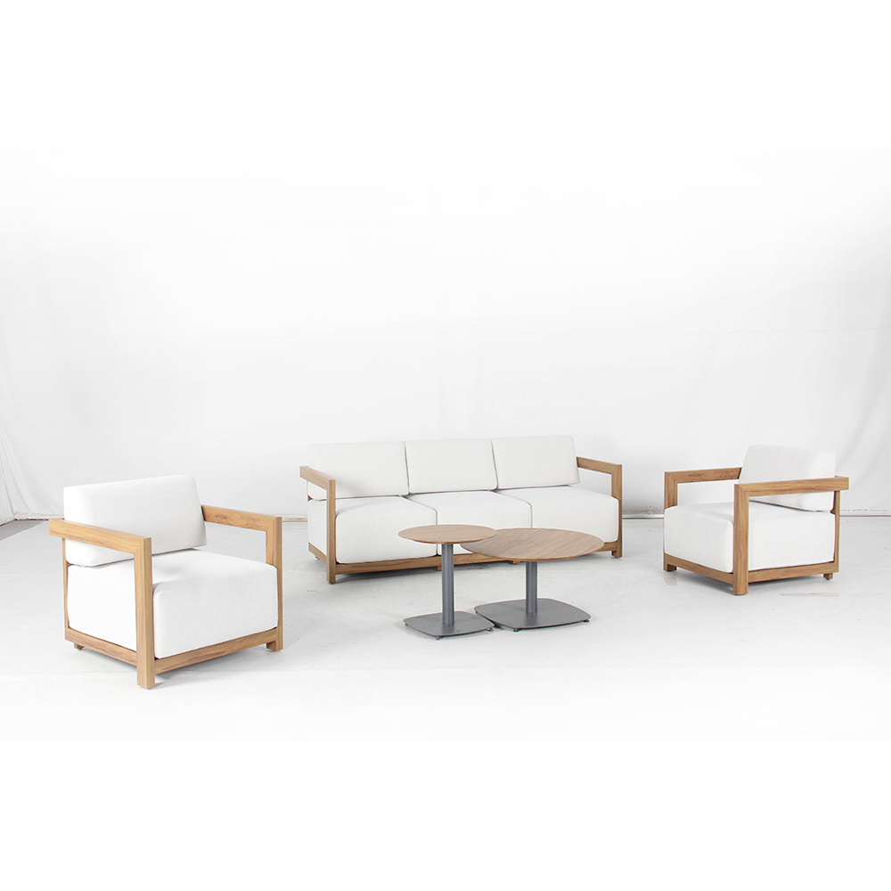 Acest set lounge este întruchiparea eleganței contemporane, perfect pentru crearea unei atmosfere primitoare și rafinate în orice spațiu exterior. Fiecare piesă combină linii curate și materiale de înaltă calitate , cu un cadru robust din lemn și perne confortabile din țesătură rezistentă la intemperii, asigurând un confort de lungă durată și o întreținere minimă.