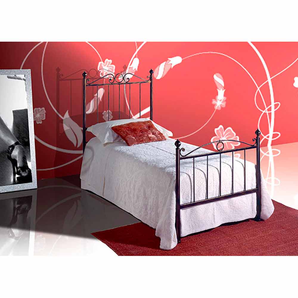 Fier forjat pat Varianta singur cap și recipient cu footboard include baza perforata care poate „găzdui o saltea de 85 X 195 cm. Rețeaua care are un sistem de alimentare special de saltea firmei care îi permite să monta, de asemenea, o saltea cm lungime. 190.