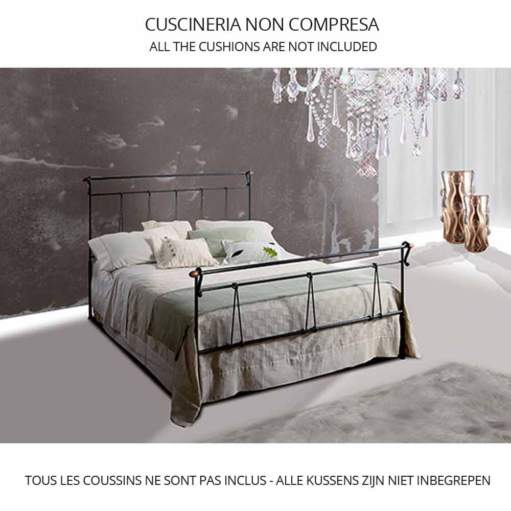 Patul din fier forjat din varianta TITIE DUBLA CU TITPIERE SI BANDI LATERALE include inserarea unui sofer de pat 160 X 190 care poate fi fie sustinut de propriile picioare, fie aplicat pentru a se sprijini pe cadrul patului. Această a doua soluție este recomandată de companie deoarece facilitează operațiunile de mutare și curățare. În orice caz, decizia modului de aplicare a soclului poate fi luată direct în momentul montării și este reversibilă deoarece consolele de susținere sunt incluse în dotarea patului. In cazul in care exista nevoi speciale legate de conformatia fizica, de combinarea cu sotierele existente sau pur si simplu de estetica, acest model, datorita productivitatii noastre artizanale, poate fi modificat in inaltime, lungime si latime.