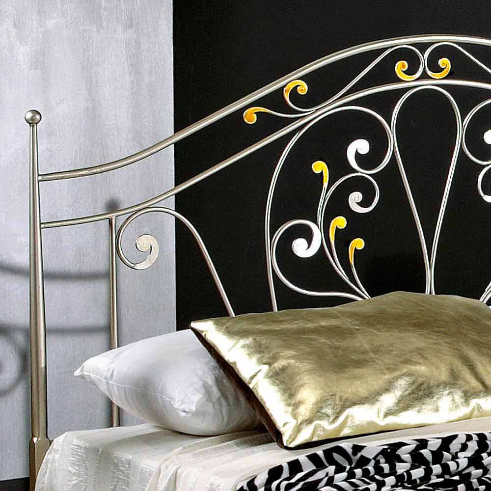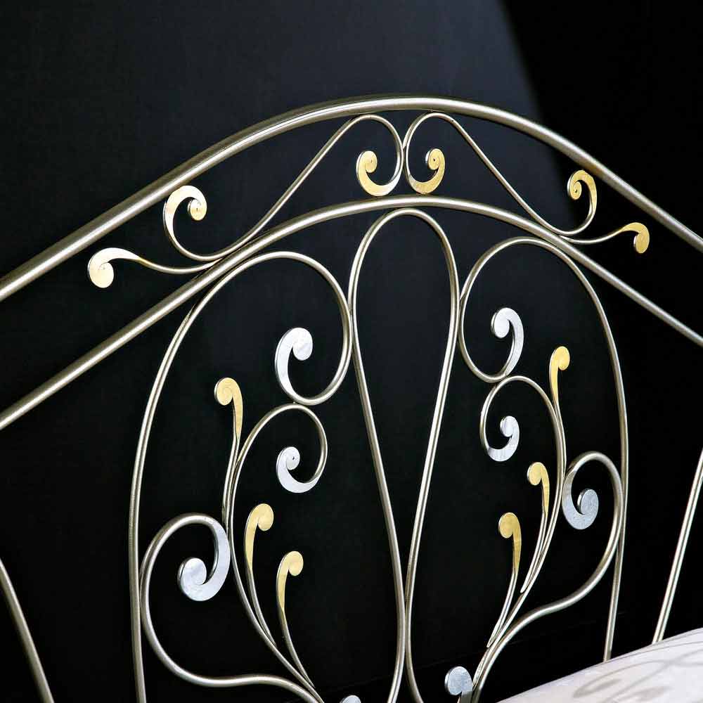 Acest pat este forjate manual și are o structură din fier forjat complet, cu picioarele în tub conic. Toate elegant, cu finisaj argintiu lucios.