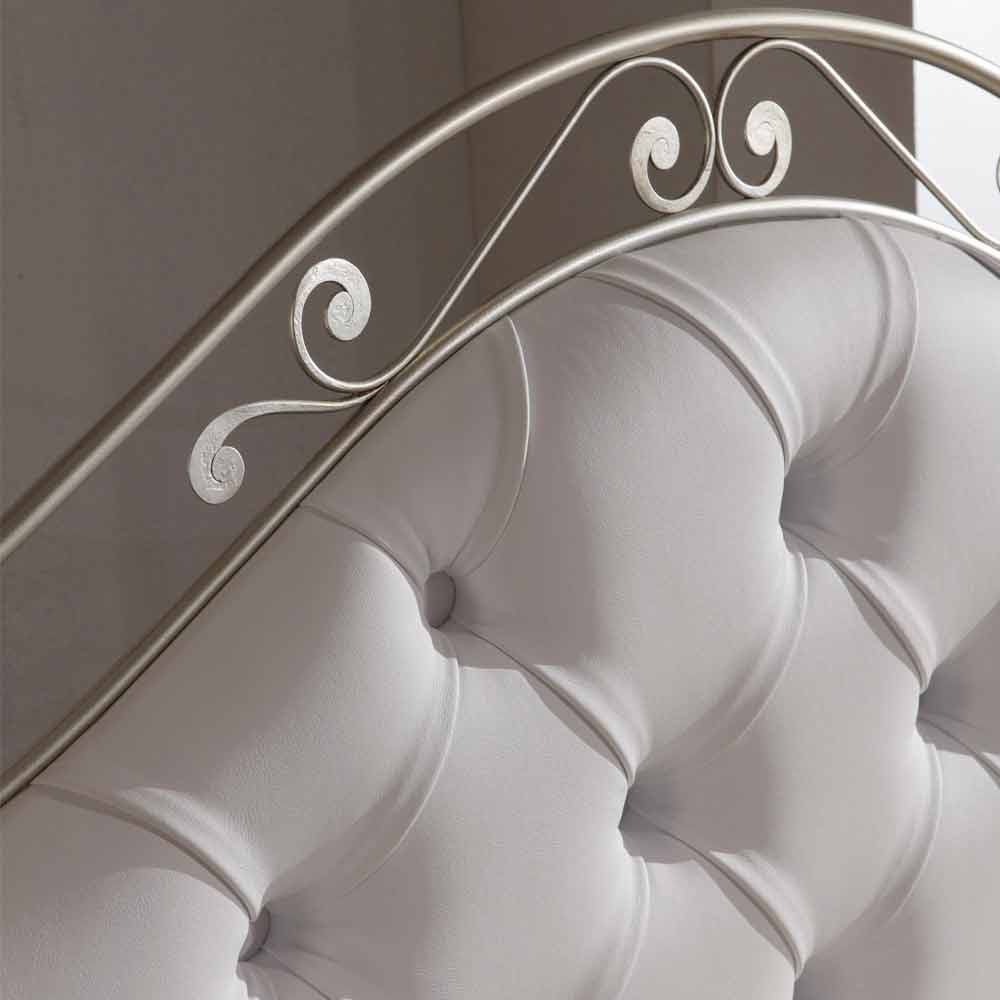 Gracie este îmbogățit cu o tăblie în căptușită matlasat, acoperit cu imitație de piele în finisaj alb delicat, care se alătură finețea structurii de argint.