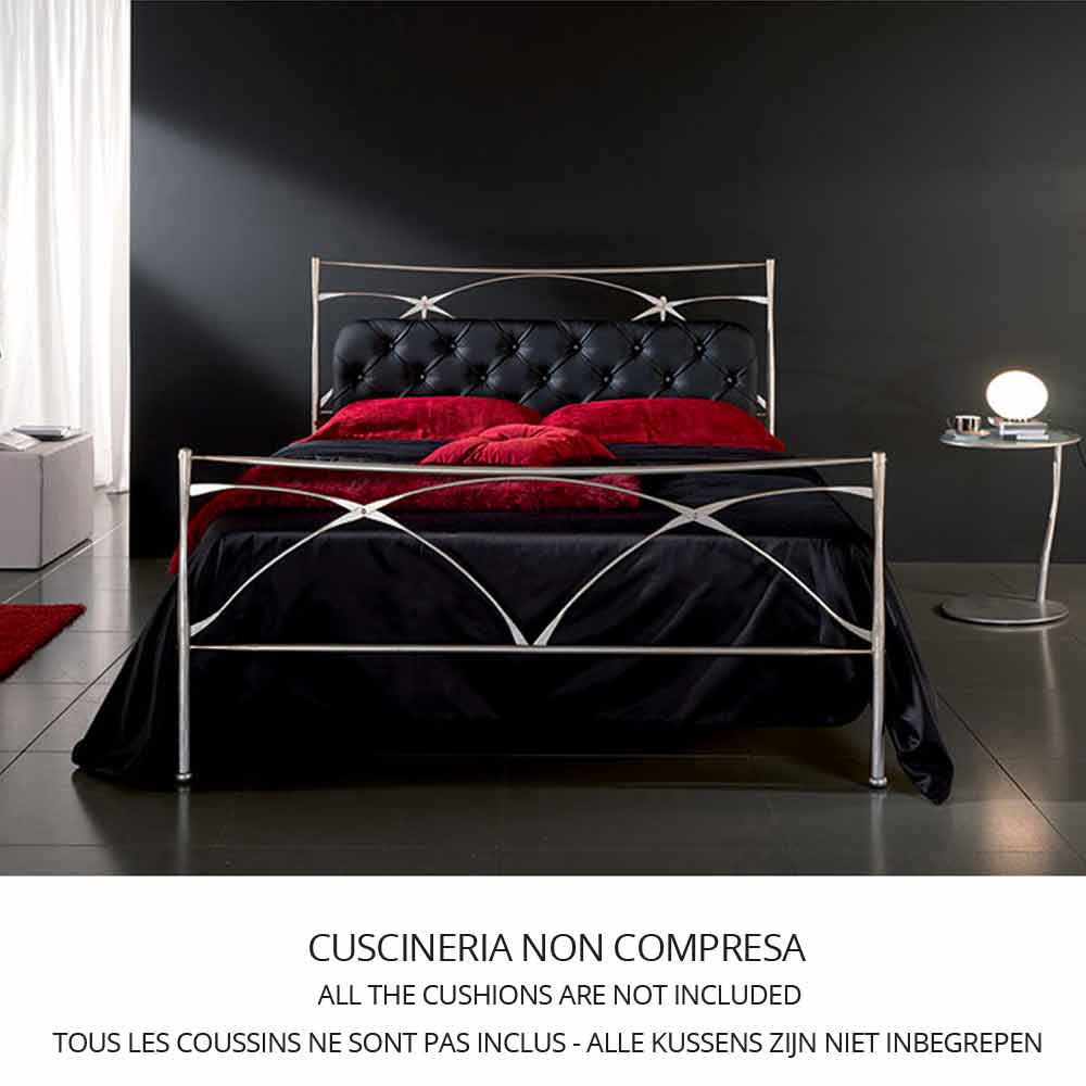 Patul din fier forjat în varianta CM. 120 CAP CU BENZI SIDE footboard Aceasta implică introducerea unei rețele de 120 X 190, care poate fi fie susținută de picioare, se aplica sprijinindu-se pe structura de pat. Această a doua soluție este recomandată de către companie, deoarece facilitează operațiunile de deplasare și de curățare. În orice caz, decizia de modul de aplicare a rețelei poate „fi luate direct la momentul montării și este reversibilă prin aceea că suporturile de susținere sunt incluse în echipamentul de pat. Dacă au existat cerințe speciale legate de structura fizică, combinația cu rețele au deja sau pur și simplu estetica, acest model, datorită productivitatea artizan poate fi modificată în înălțime, lungime și lățime totală.