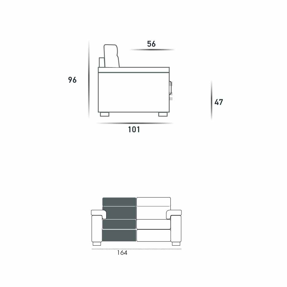 Canapea motorizată cu 2 locuri cu 1 scaun electric Lilia, fabricată în Italia
