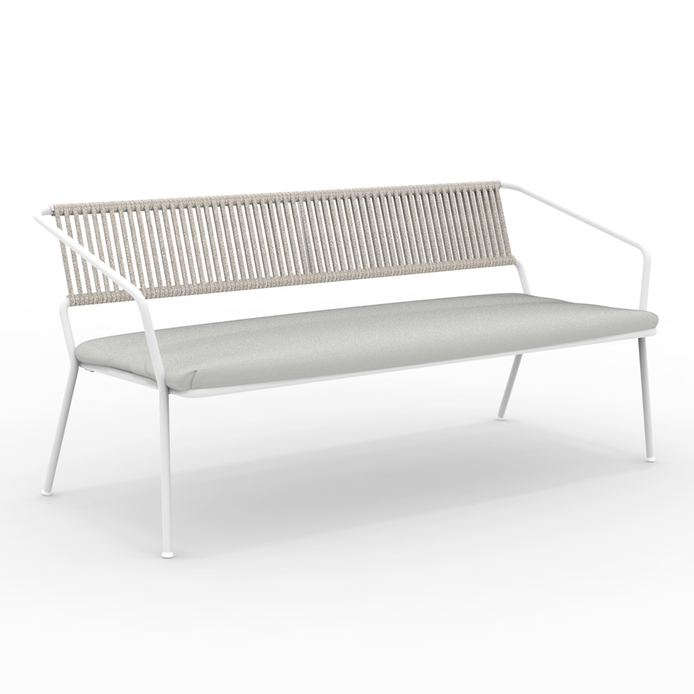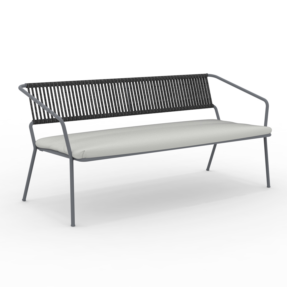 Canapea de grădină cu 2 locuri, cadru din fier galvanizat vopsit în câmp electrostatic și șezut din frânghie și material textil, fabricată în Italia