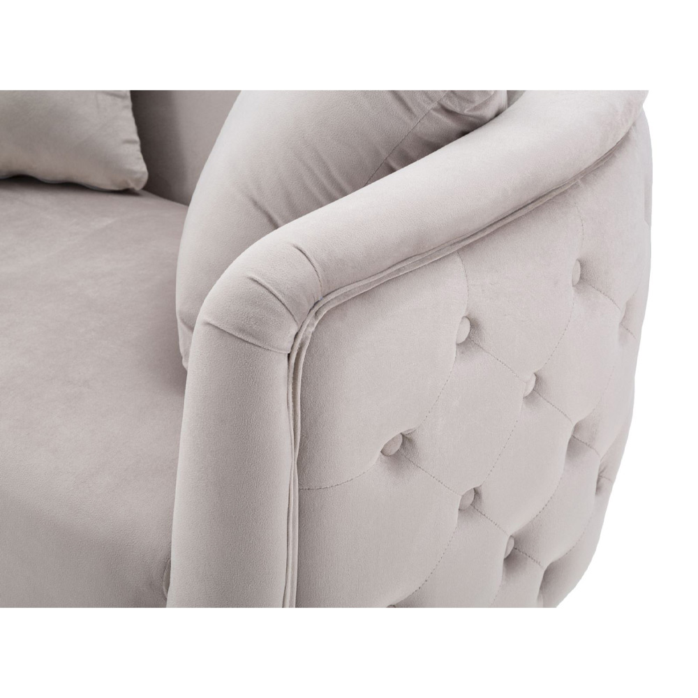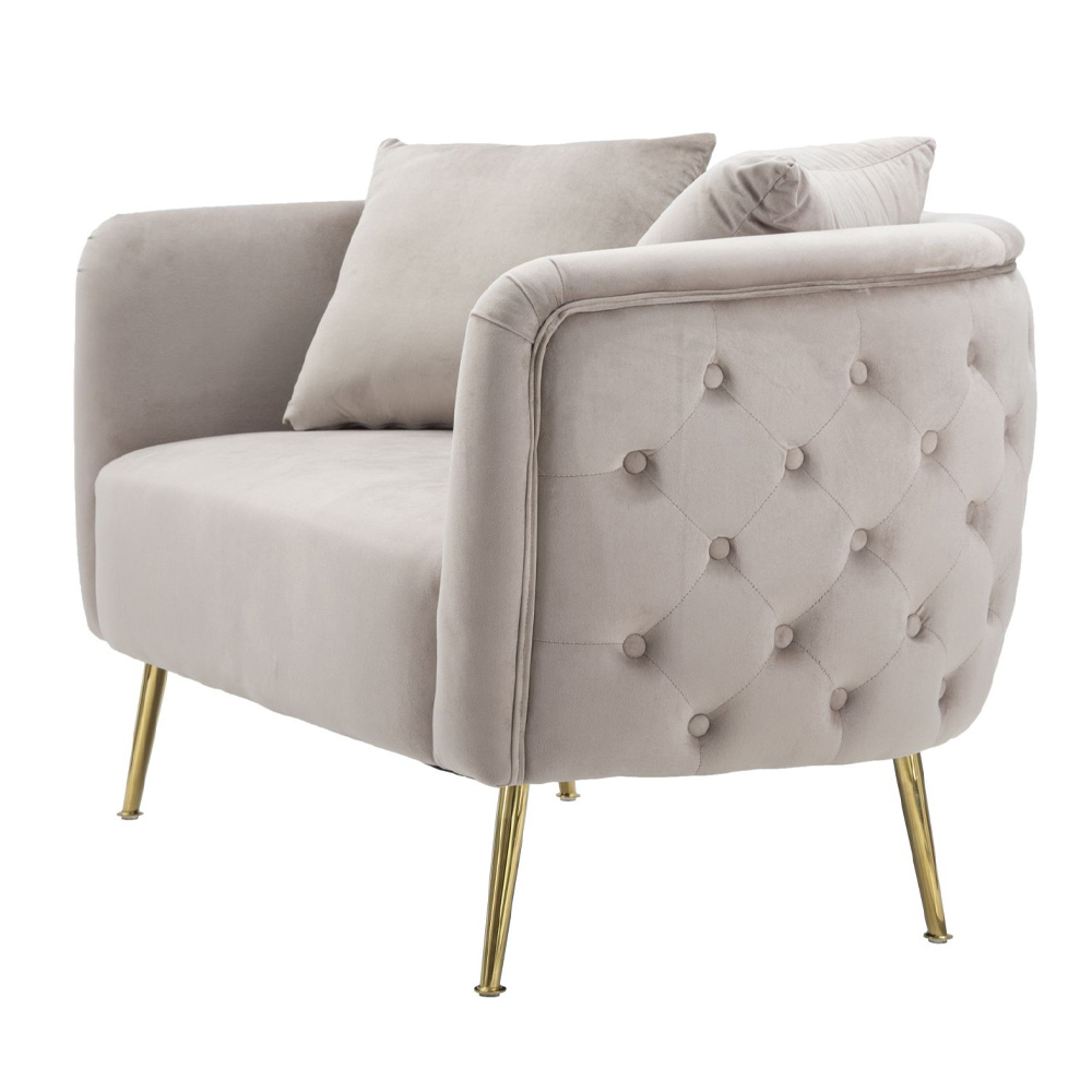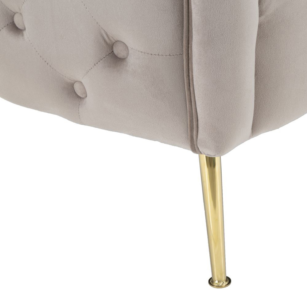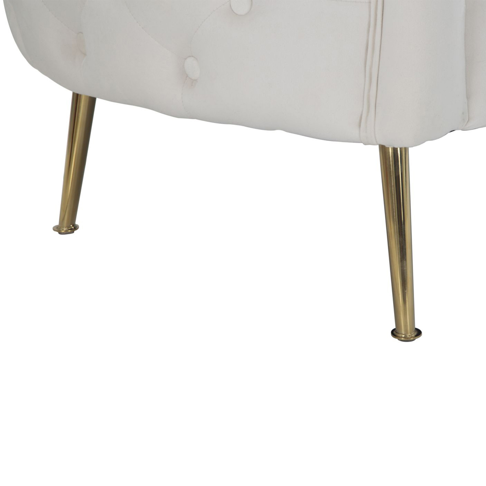 Canapea 2 locuri tapițată și acoperită cu catifea cu picioare de fier aurii.