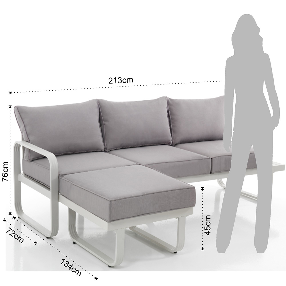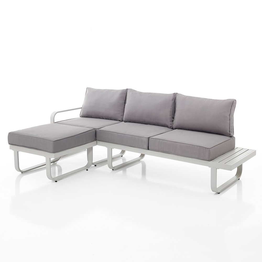 Aceasta canapea este emblema confortului minimalist pentru spatiile exterioare . Liniile sale curate și structura din aluminiu oferă o estetică modernă și captivantă care se adaptează cu versatilitate atât grădinilor moderne, cât și teraselor în stil mai clasic.