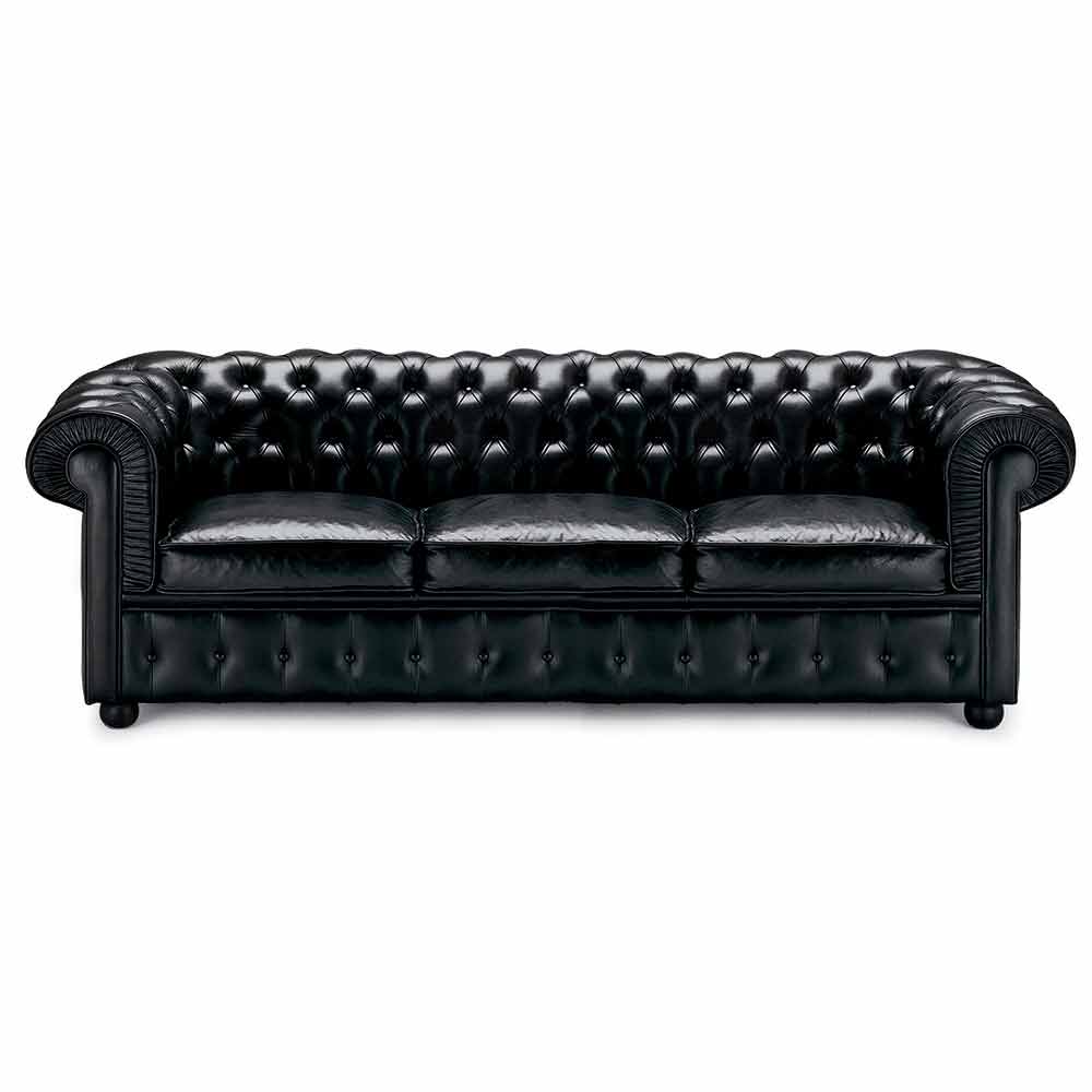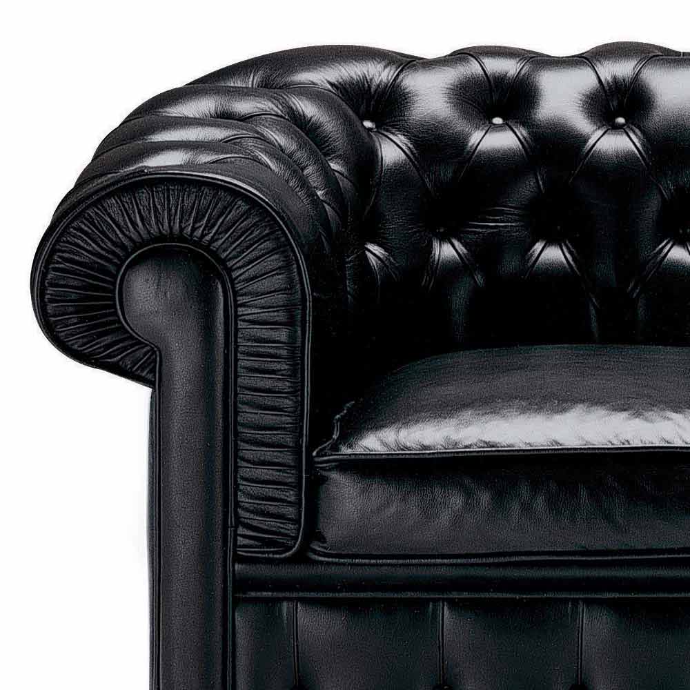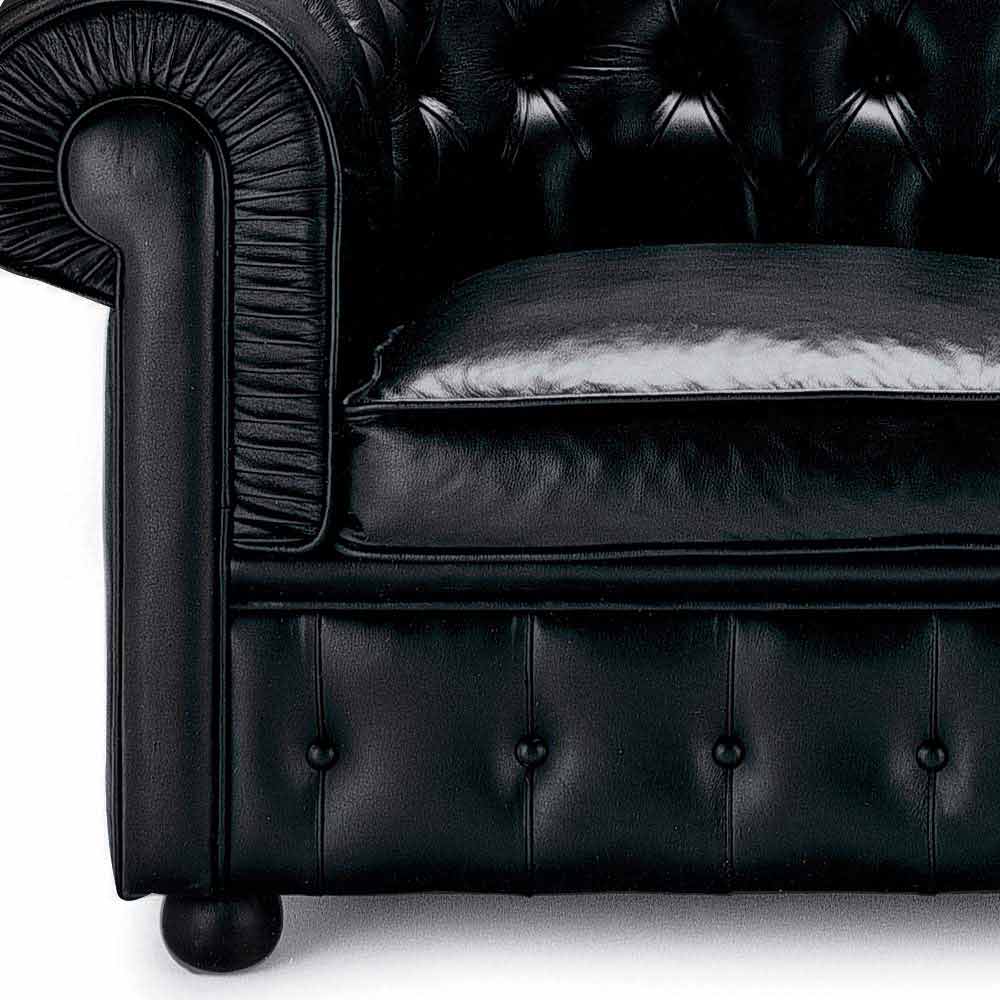 Canapea 3 locuri stil clasic tapițată în piele cu picioare din lemn Made in Italy.