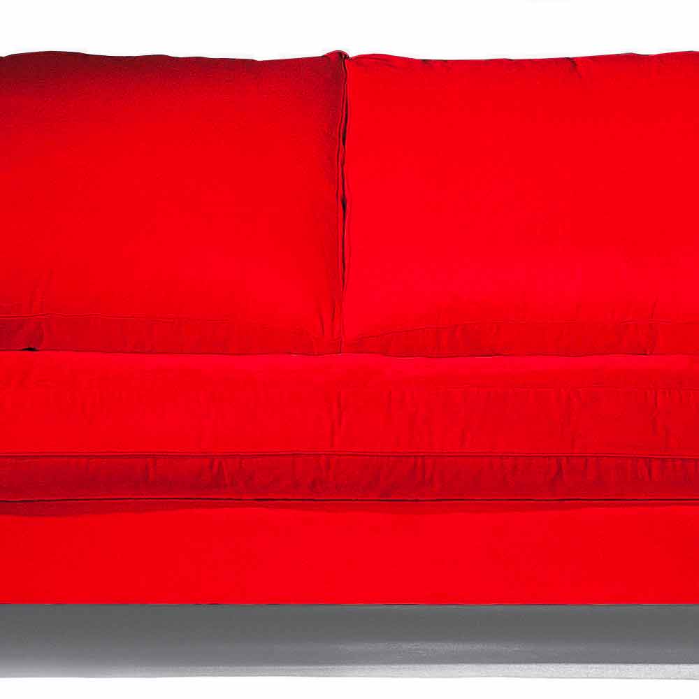 Canapea modernă cu 2 locuri realizată în întregime în Italia cu cadru din lemn acoperit cu spumă poliuretanică și căptușeală din fibră de poliester, perne sterilizate din puf de gâscă acoperite cu