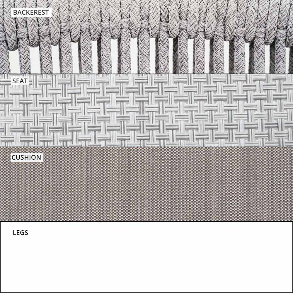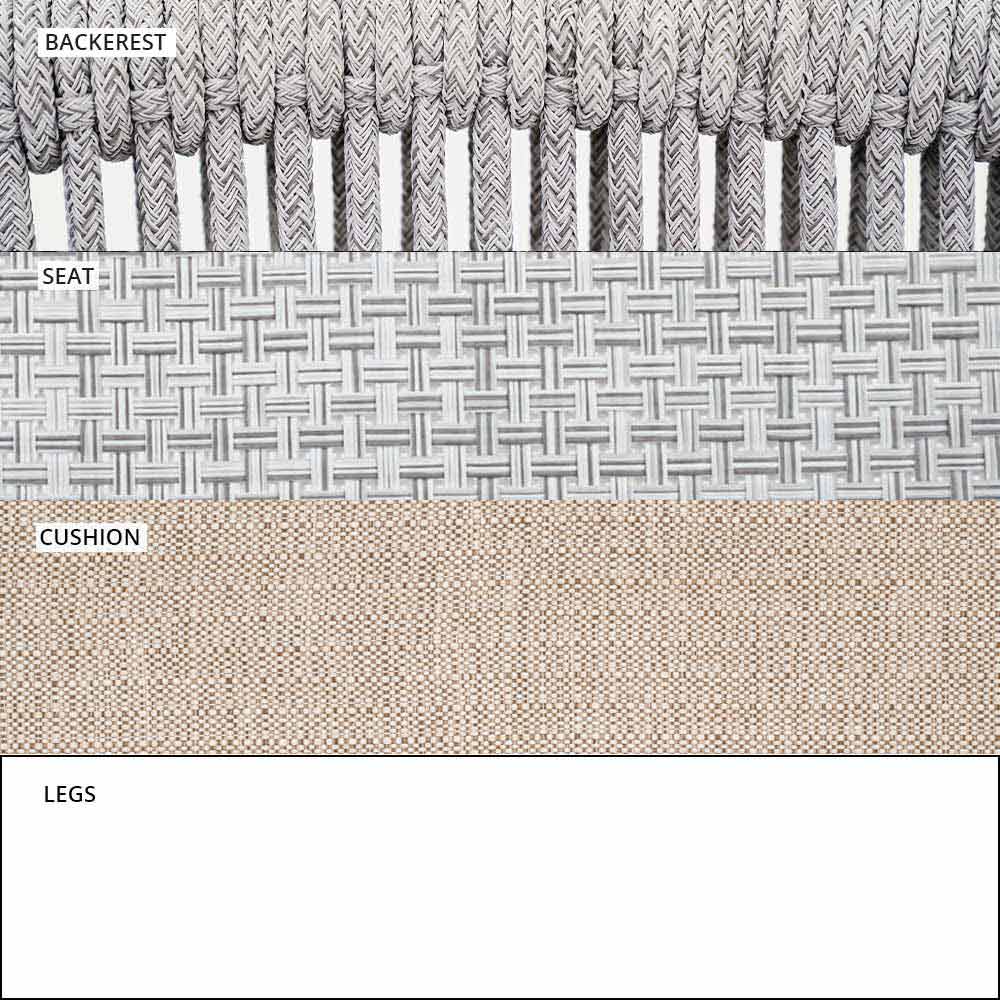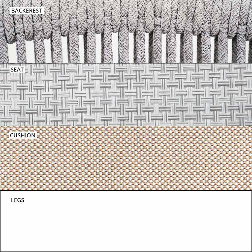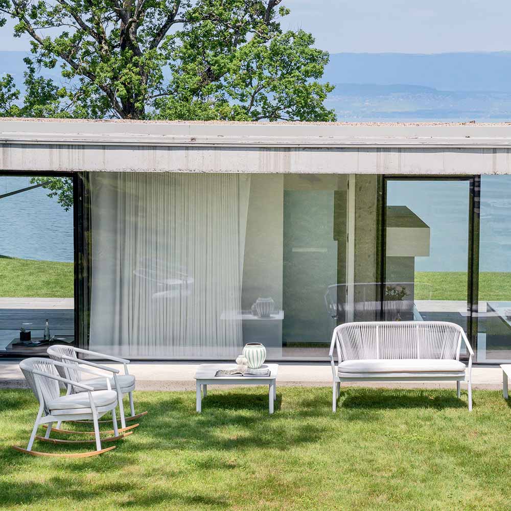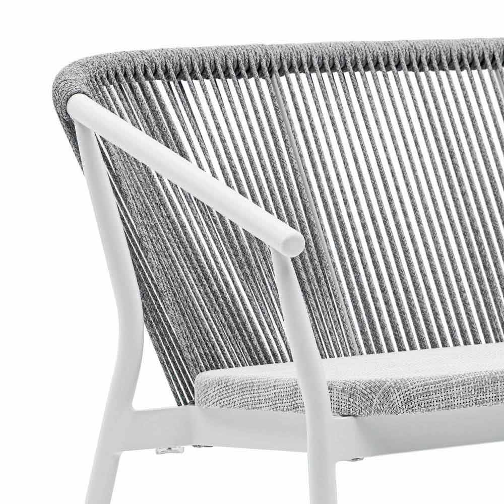 Îmbinarea spătarului din cordonul sintetic VAR # TEX îmbunătățește estetica acestei canapele concepute pentru a se bucura de zilele în aer liber în companie.