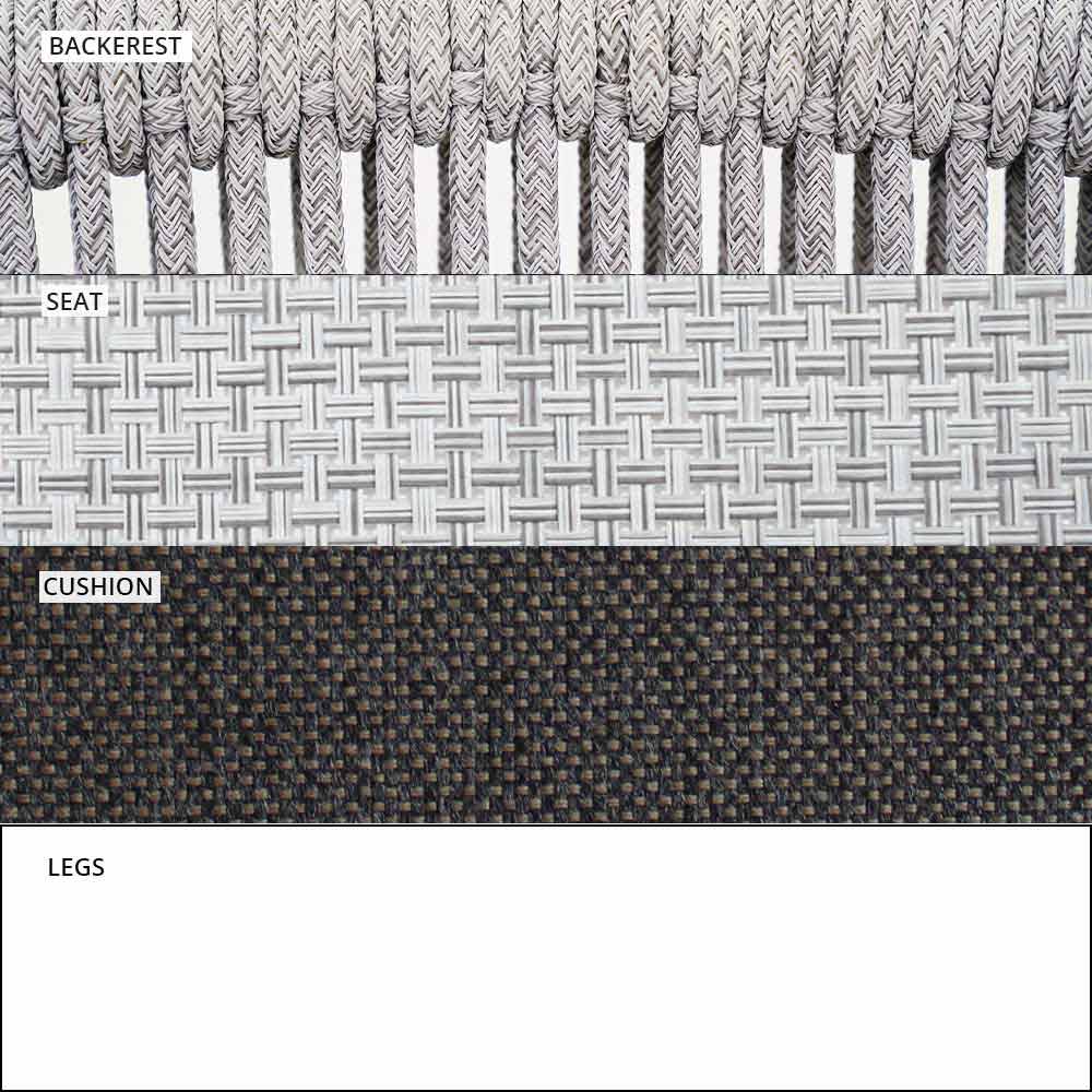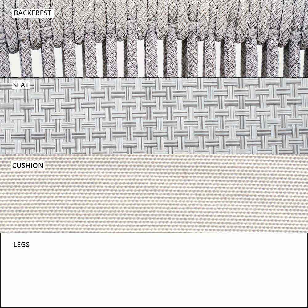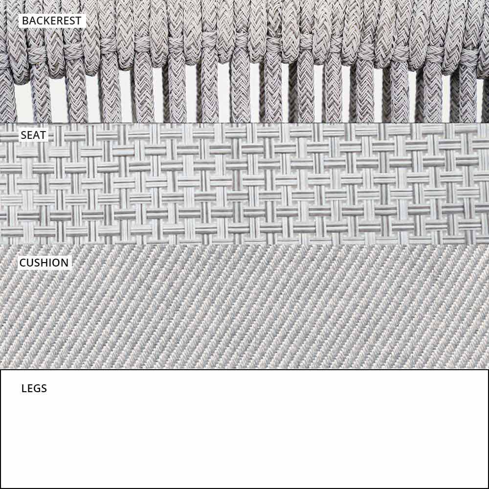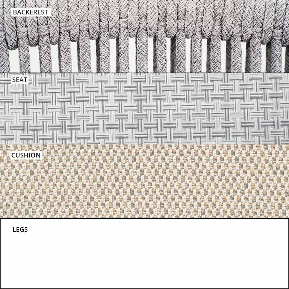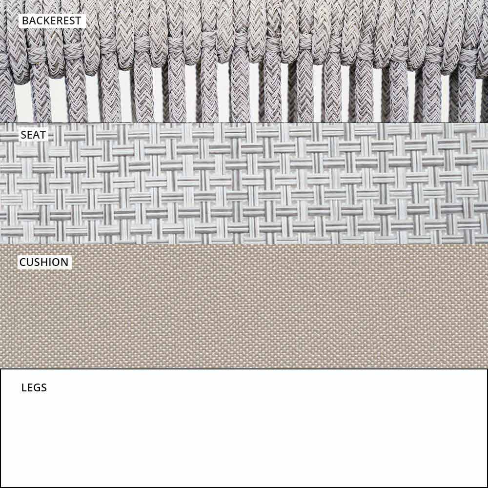 Îmbinarea spătarului din cordonul sintetic VAR # TEX îmbunătățește estetica acestei canapele concepute pentru a se bucura de zilele în aer liber în companie.