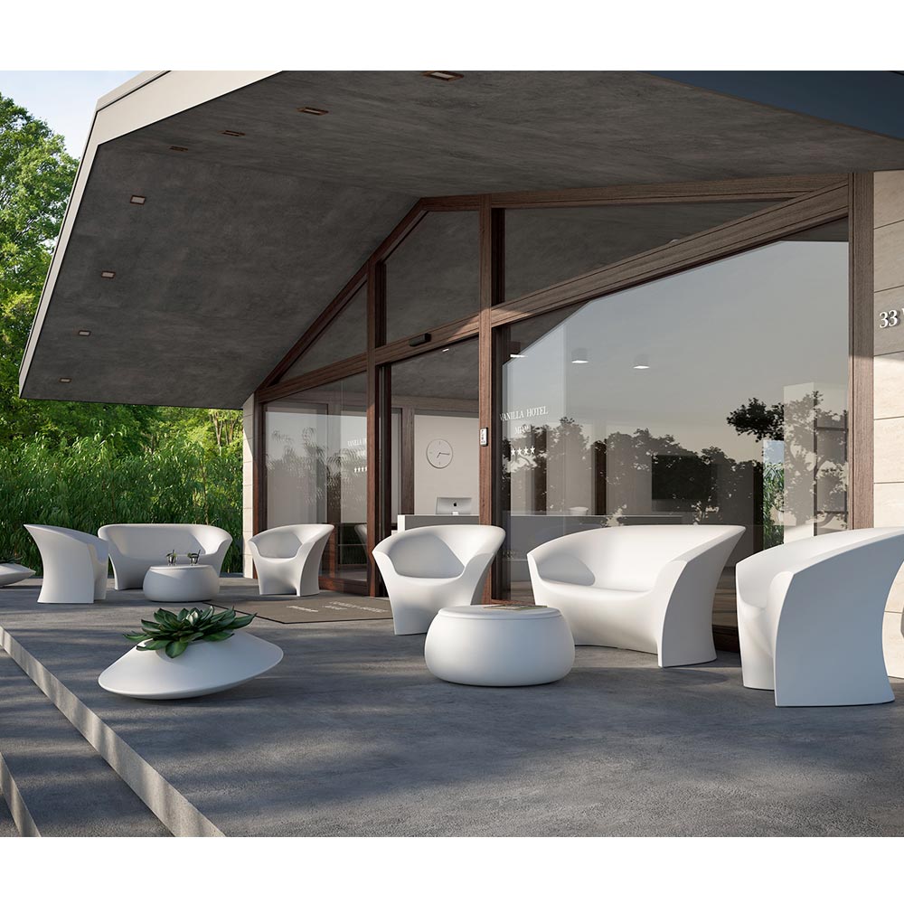 canapea de exterior este caracterizată de linii ușoare și delicate, dar în același timp este dotată cu o stabilitate excelentă datorită materialului ales, care asigură un produs final robust și de înaltă calitate. Întreg produs în Italia, acest produs este fabricat din polietilenă disponibilă în versiunea opacă caracterizată prin rezistență excelentă la soare, șocuri și căldură sau în versiunea lăcuită rezistentă și strălucitoare care vă permite să creați jocuri de lumină și reflexii care devin protagoniști în interior. a mediului. Ideal pentru decorarea oricărui mediu în aer liber cu gust și rafinament fără a neglija aspectul funcțional și practic.