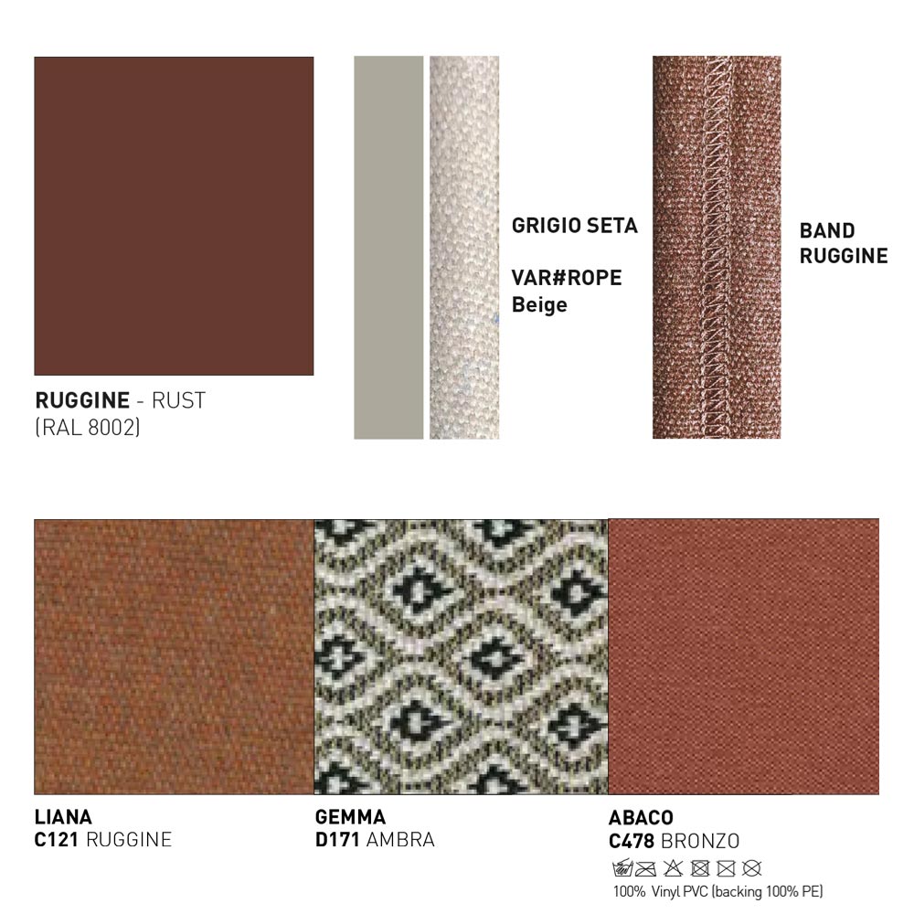 Canapea de grădină cu 3 locuri, fabricată în Italia , cu structură din aluminiu acoperită cu pulbere epoxidică , spătar țesut manual cu bandă de culoare rugină, pernă de șezut cu căptușeală dryfeel și 8 perne pentru spătar inclus. Această piesă de mobilier cu un stil modern și original a fost concepută pentru a satisface ochiul cu estetica sa elegantă , garantând în același timp un confort autentic .