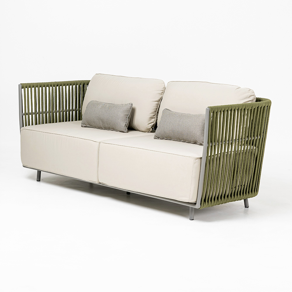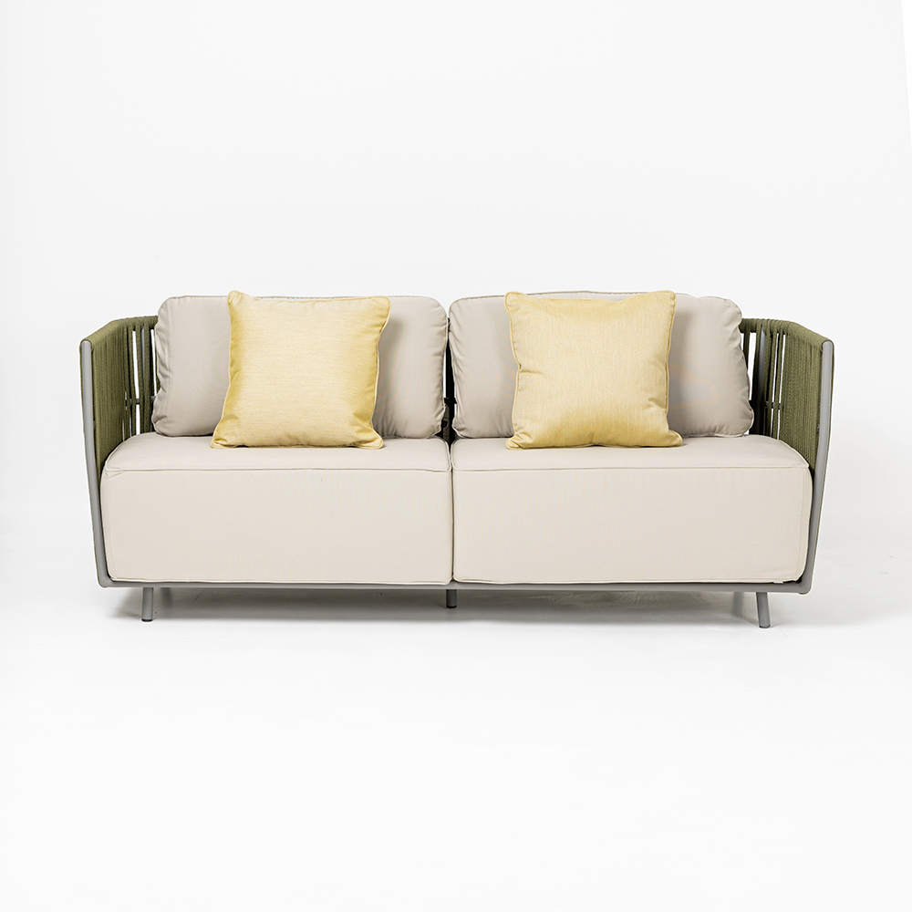 Această canapea cu scaune mari este ușor de manevrat și rezistentă, dar în același timp păstrează un design curat și esențial. Stilul său modern îi conferă un caracter puternic, făcându-l perfect pentru mobilarea spațiilor exterioare, atât în mediul privat, cât și în cel contractual.