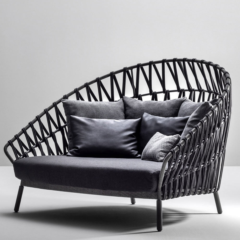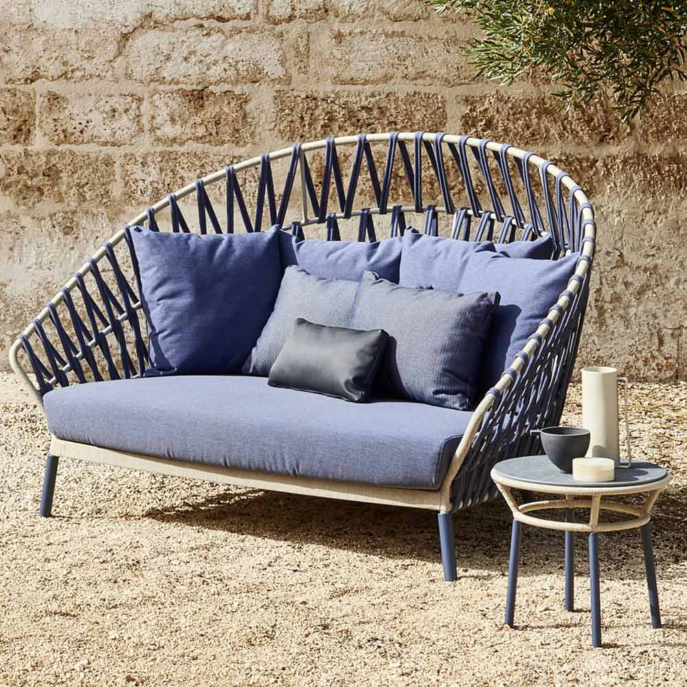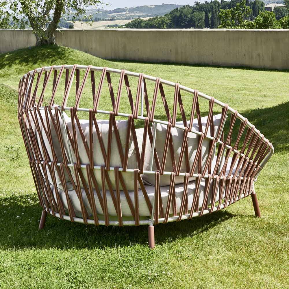 Canapea de gradina cu structura din aluminiu vopsit si spatar impletit Made in Italy.