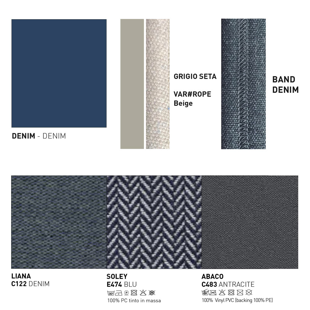 - picior din denim, coș bej VAR # ROPE, bandă din denim și pernă de șezut din denim;