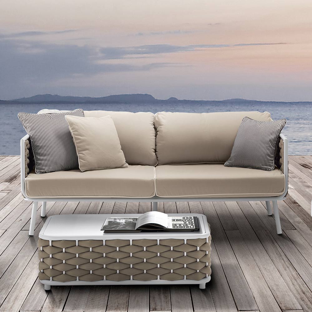 Structura acestei canapele este ușor de manevrat și rezistentă, dar în același timp păstrează un design curat. Stilul său modern îi conferă un caracter puternic, ceea ce o face perfectă pentru amenajarea spațiilor exterioare, atât în mediul privat, cât și în cel contractual.
