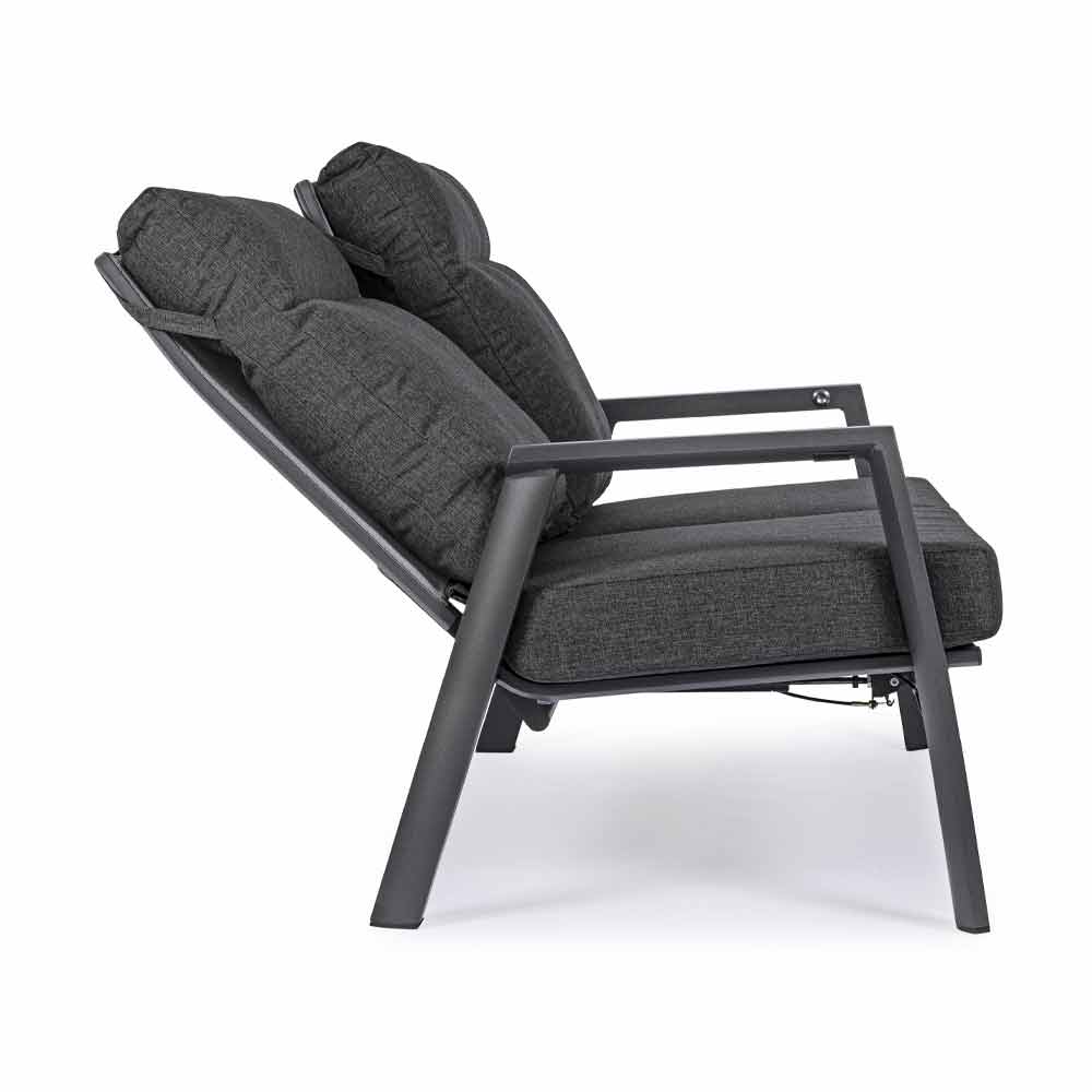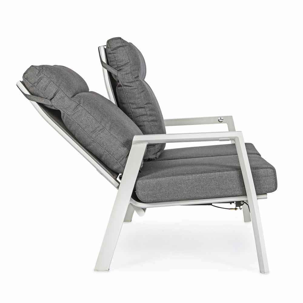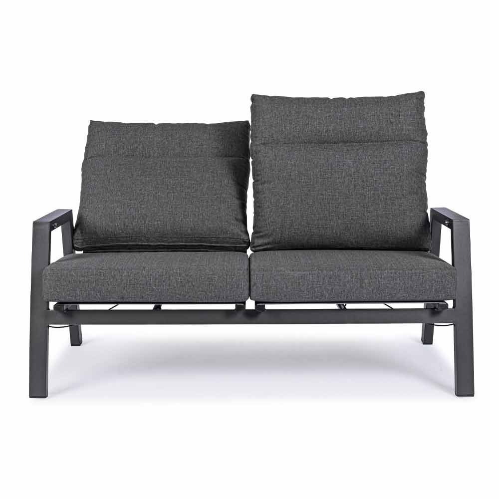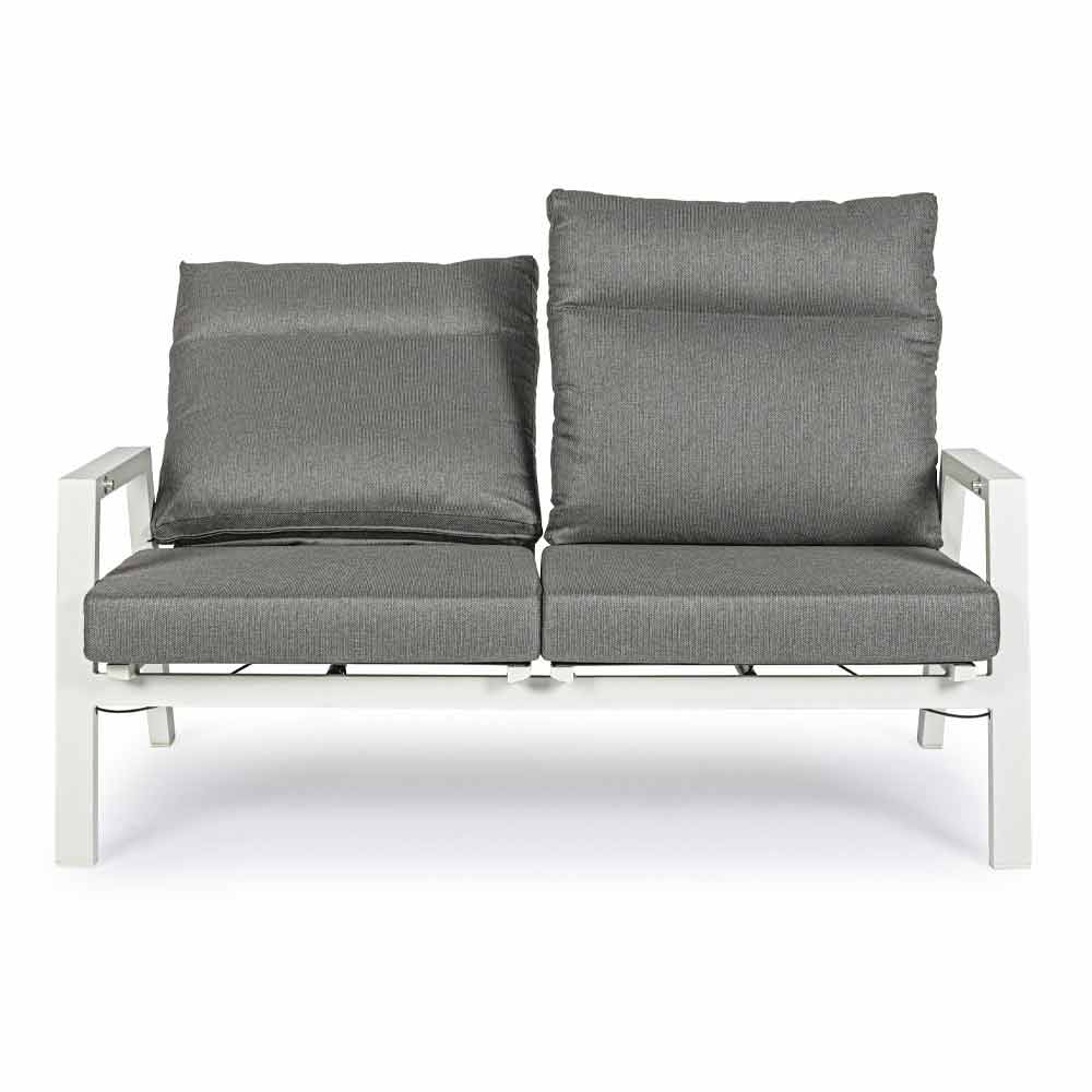 Canapea exterioară cu 2 locuri din aluminiu și țesătură cu spătar înclinat.