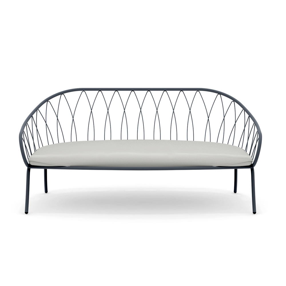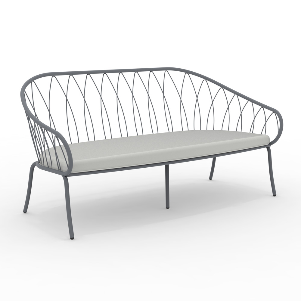 Canapea de grădină cu 2 locuri, cadru din fier galvanizat vopsit în câmp electrostatic și șezut din material textil, fabricată în Italia