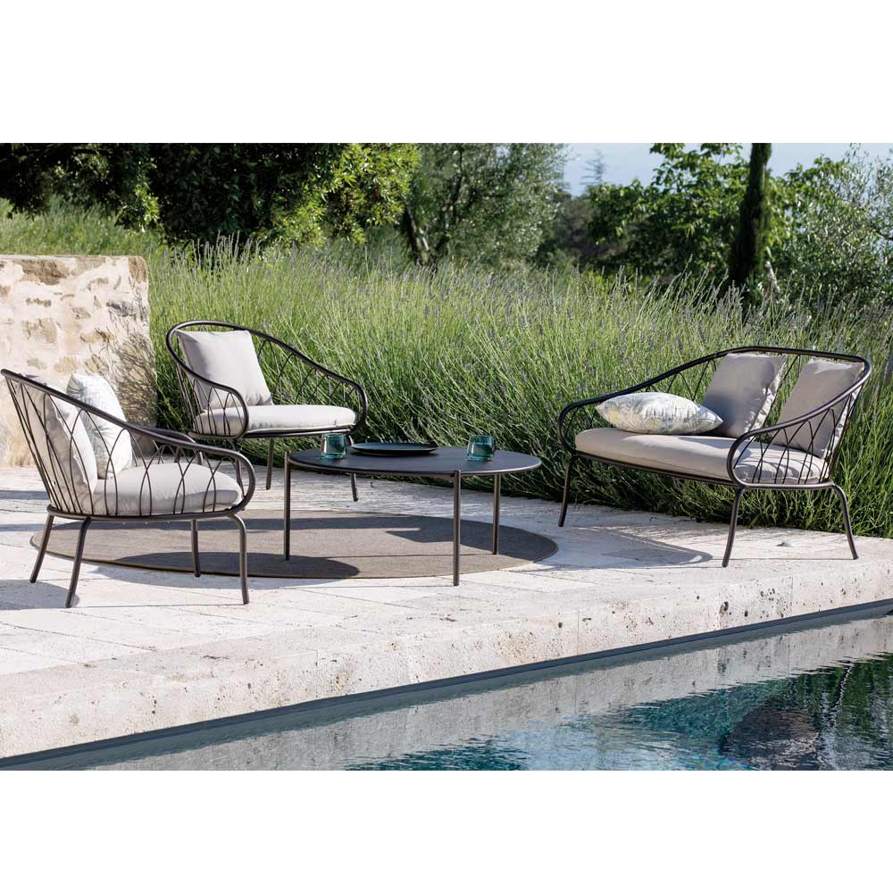 confortului în aer liber . Rama subțire din fier galvanizat vopsit în câmp electrostatic se îmbină armonios cu mediul înconjurător, în timp ce