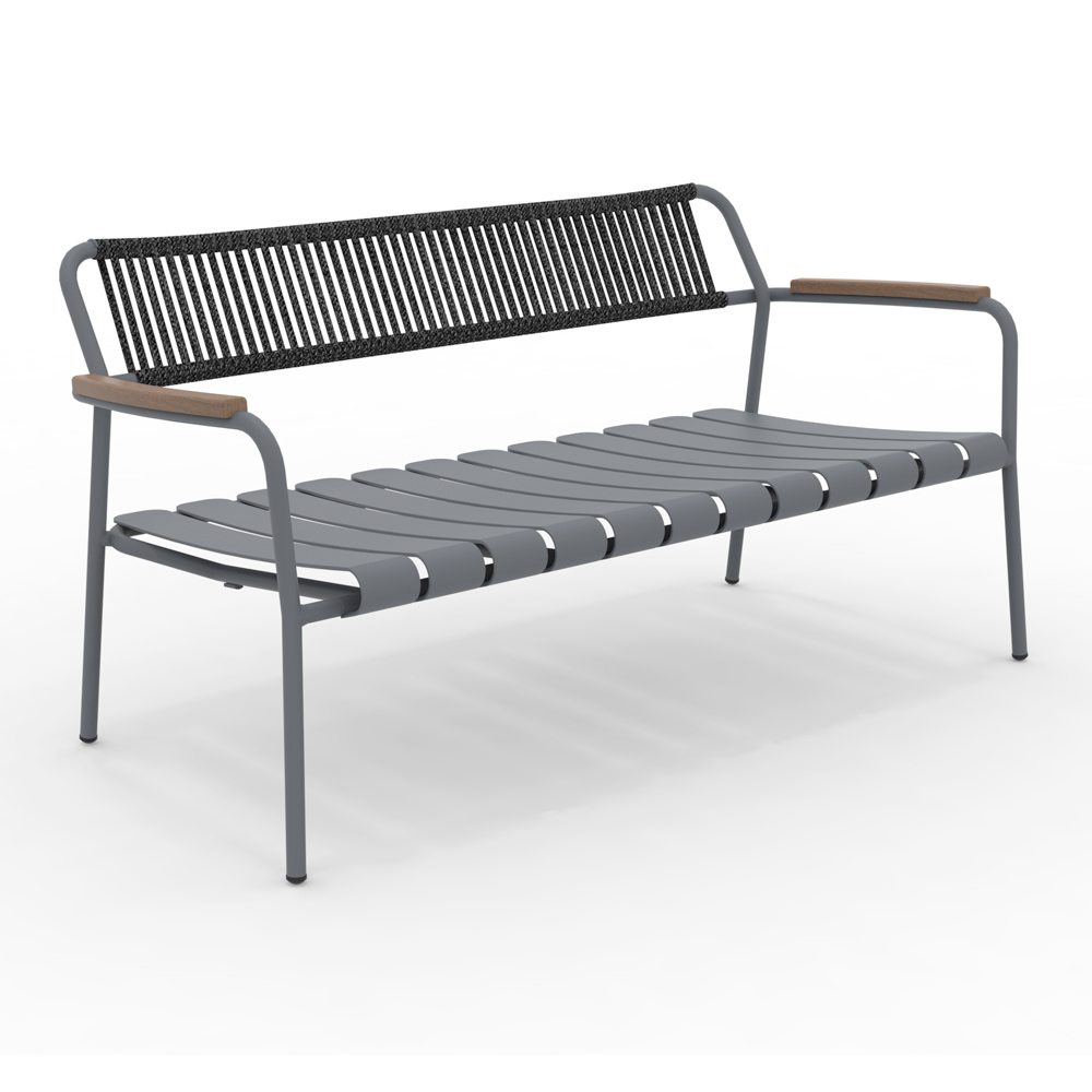 Structura ușoară, dar robustă, este concepută pentru a oferi cel mai bun confort, cu un șezut ergonomic și un spătar modelat din frânghie , care asigură un suport confortabil și relaxant. Lamelele din aluminiu conferă un aspect dinamic și modern, în timp ce finisajul adaugă o notă de eleganță și rafinament.