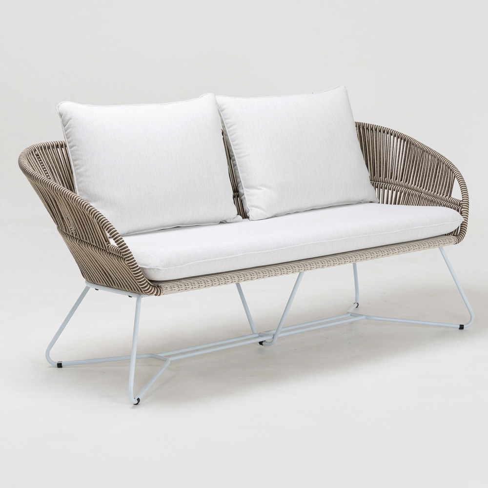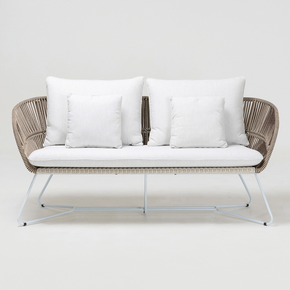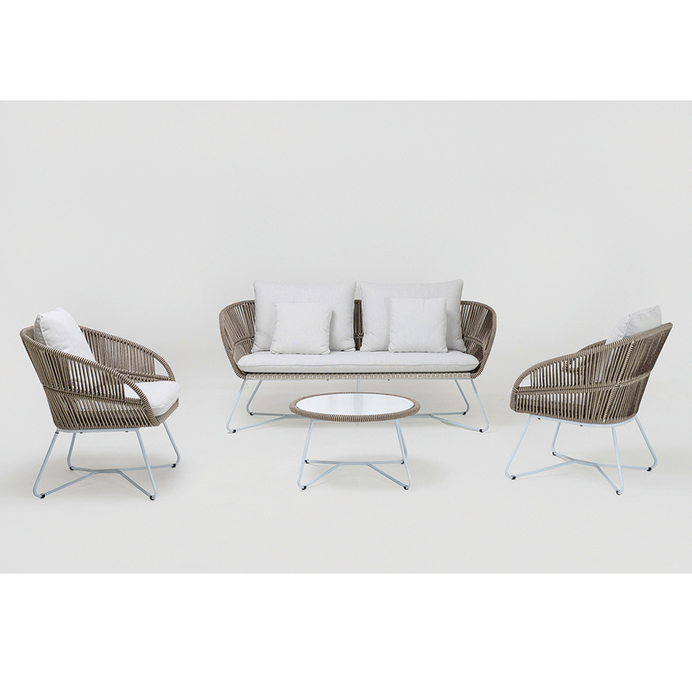 țesătură din Olefin/PP ROPE cu un finisaj bicolor alb perlat și cappuccino și pernă de șezut și 2 perne de spătar din