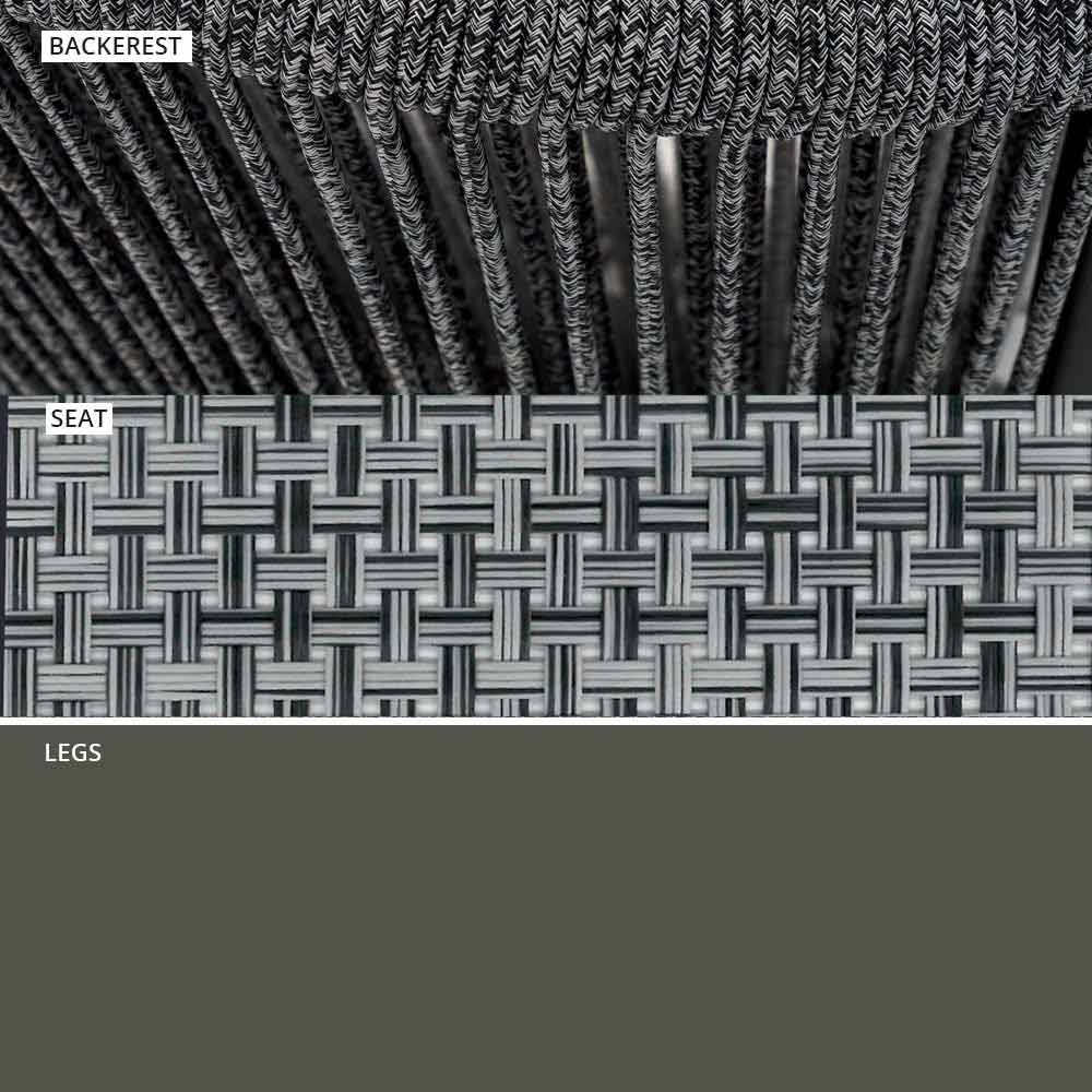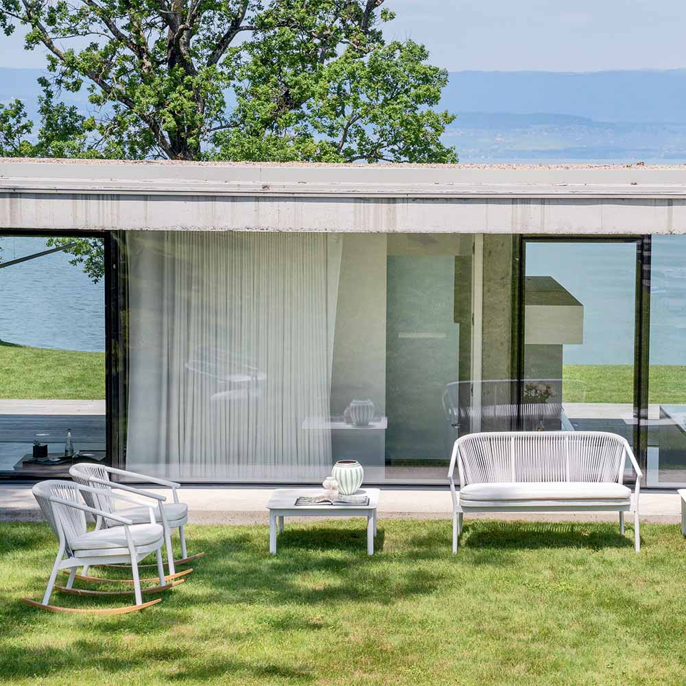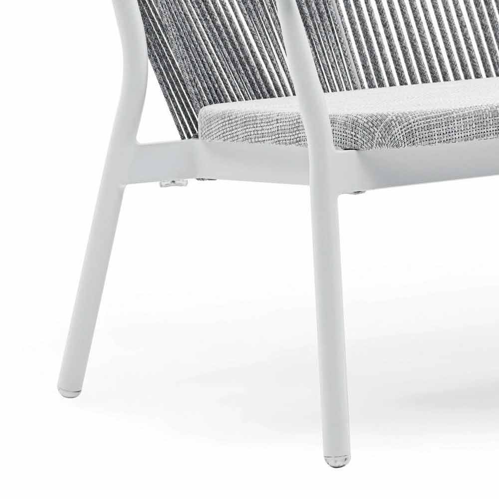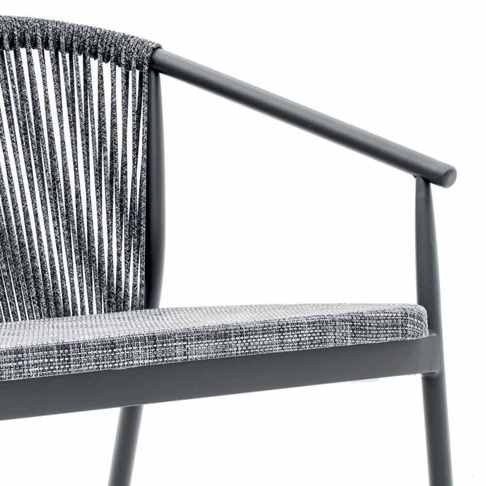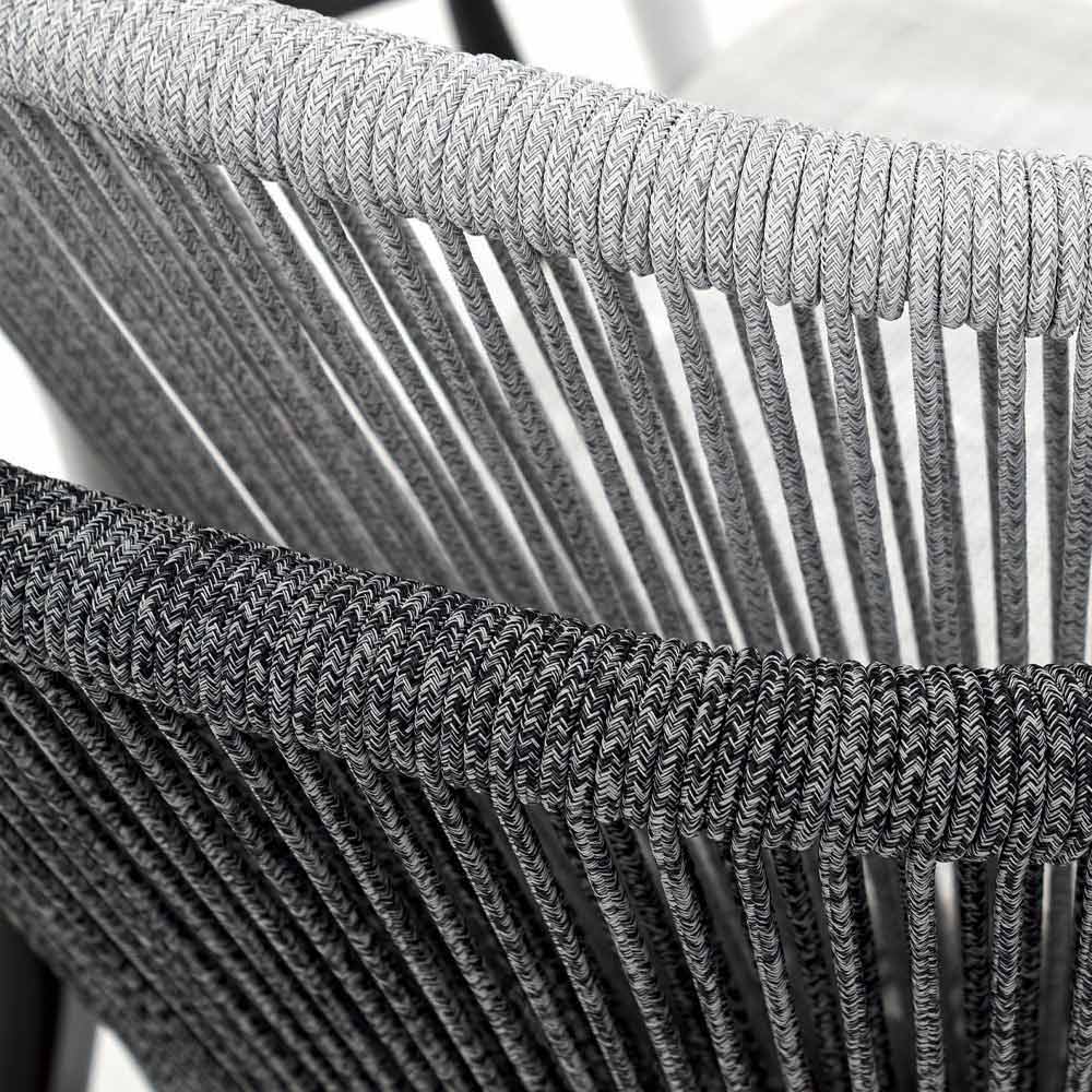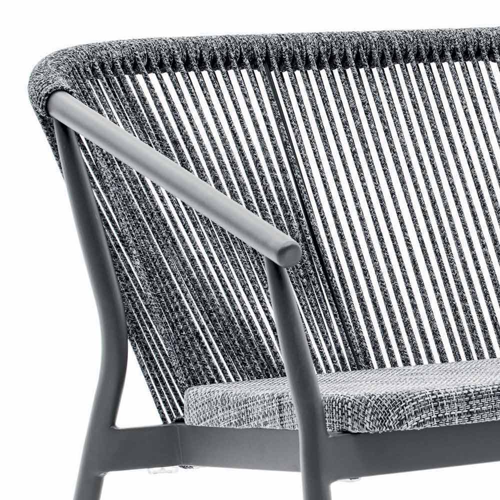 Îmbinarea spătarului din cordonul sintetic VAR # TEX îmbunătățește estetica acestei canapele concepute pentru a se bucura de zilele în aer liber în companie.