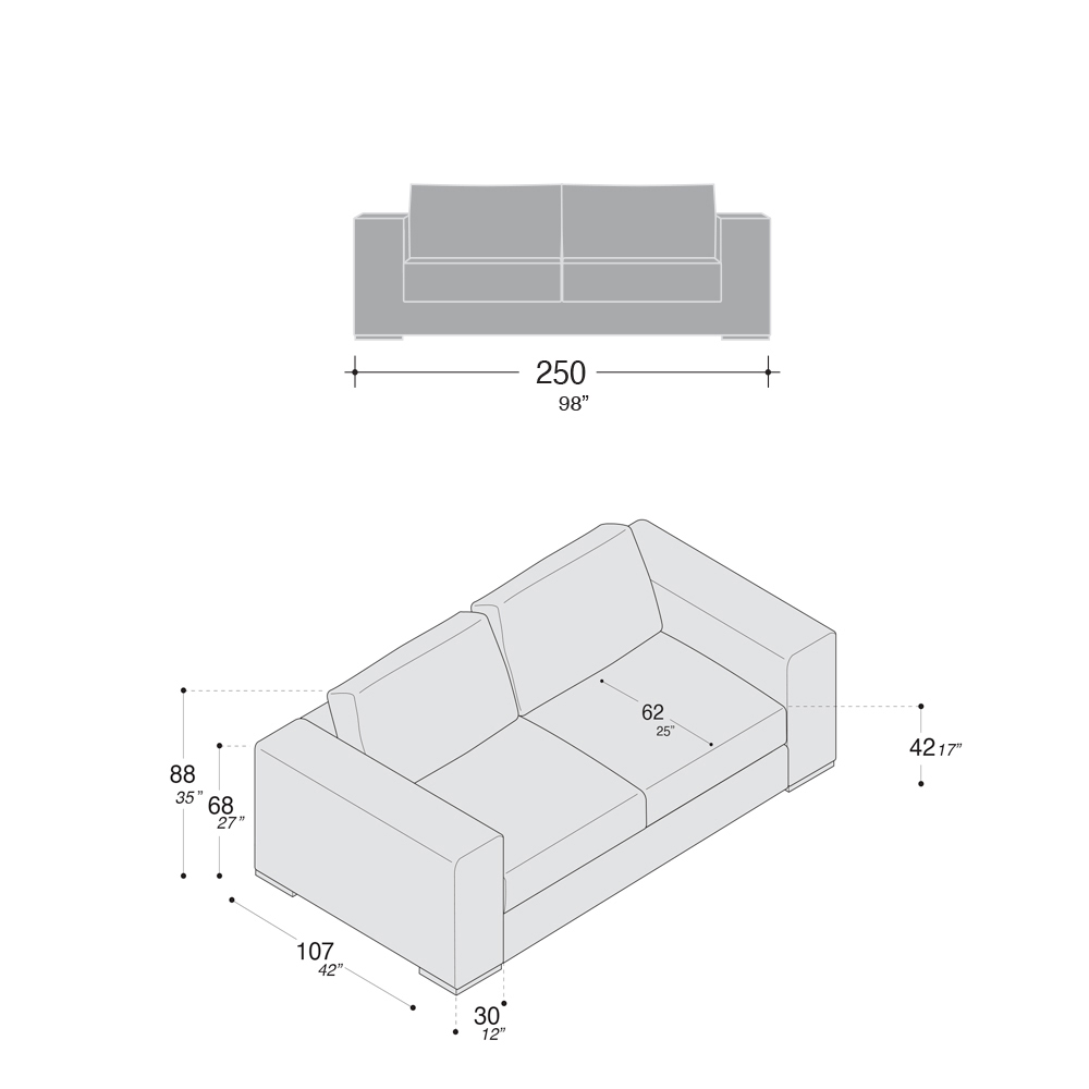 - lungime: 250 x adancime: 107 x inaltime: 88 cm