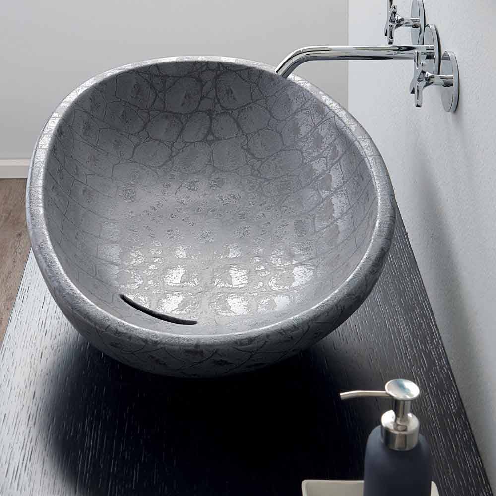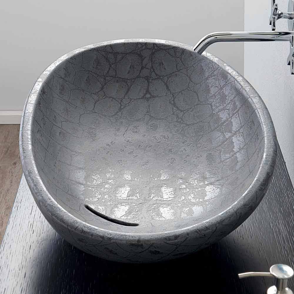Chiuvetă de blat din ceramică cu imprimare crocodil gri lucios, fabricată în Italia