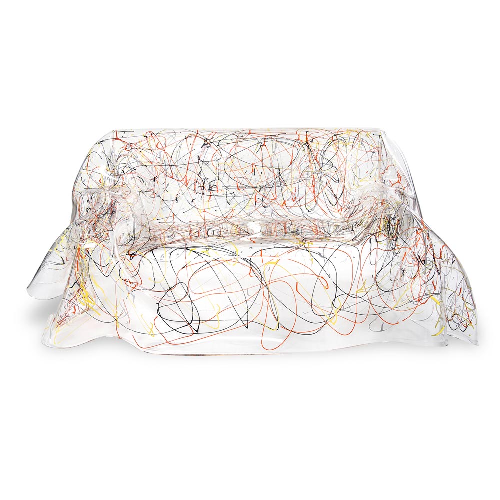 Canapea de design modern, din plexiglas alb sau multicolor, fabricată în Italia.