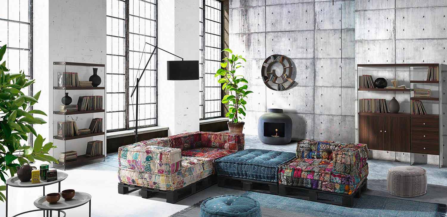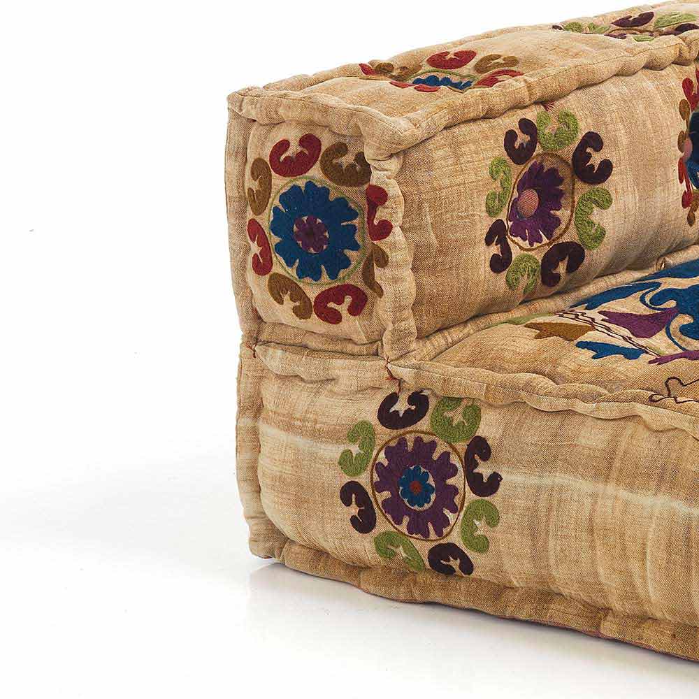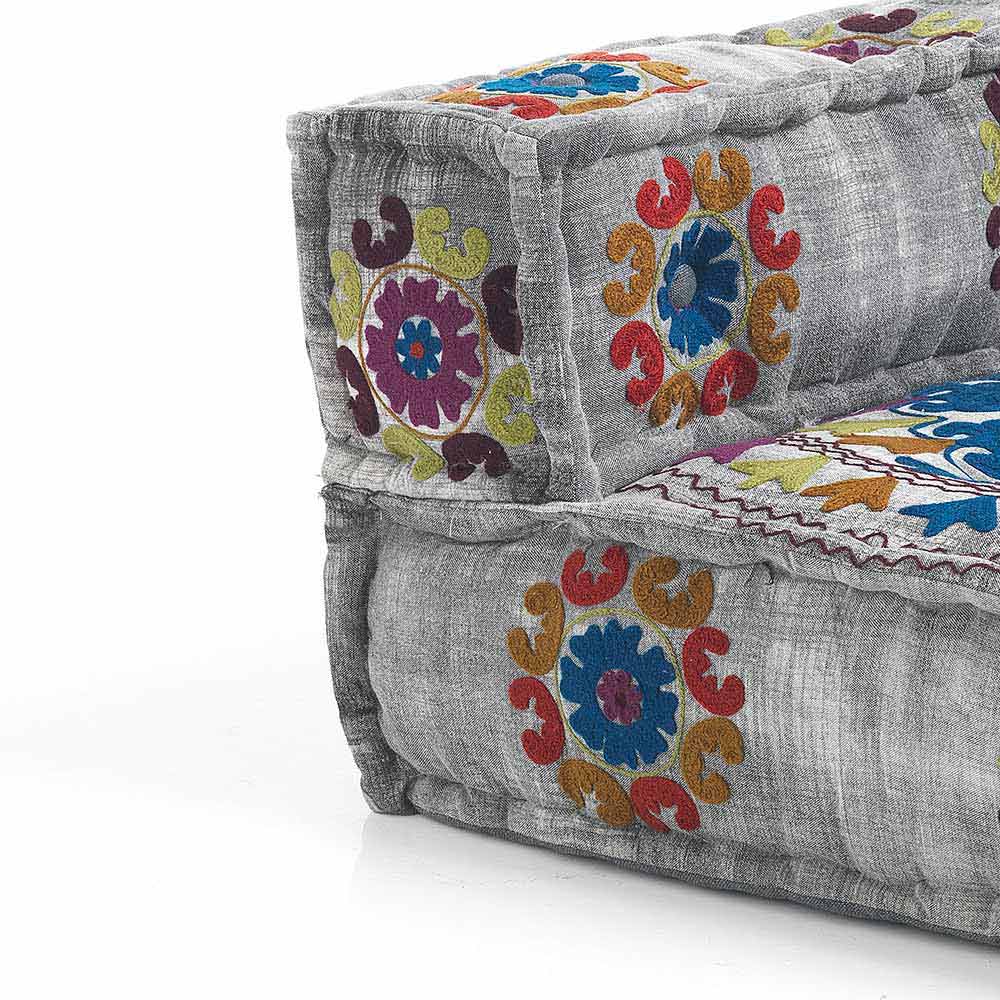 Canapea etnică cu două locuri căptușită în material patchwork și lemn - fibră