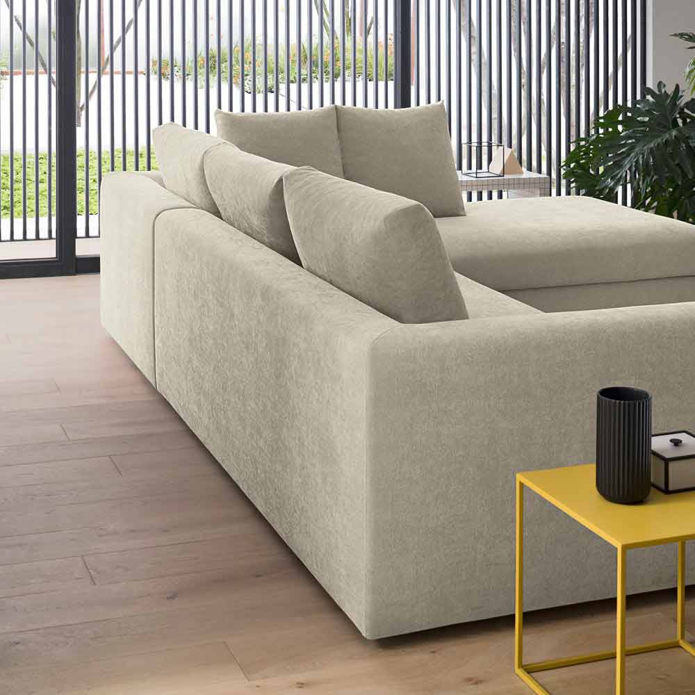 canapea de familie extrem de elegantă și primitoare, îmbogățită cu șezlongul mare, care oferă confortul ideal pentru a vă bucura de seri minunate cu prietenii sau a vă lăsa răsfățați de îmbrățișarea caldă și moale a designului său primitor. Rapidă și ușor de pregătit, această canapea se transformă într-un