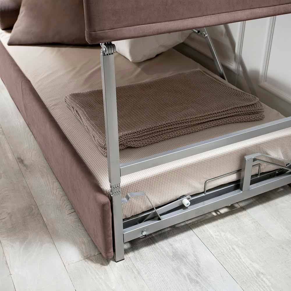 Canapea extensibilă supraetajată acoperită în țesătură maro cu design modern Made in Italy.