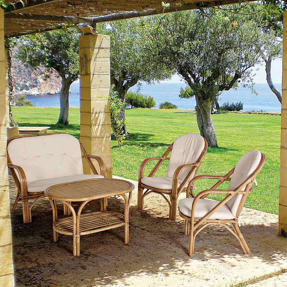 Canapea exterioară cu 2 locuri pentru grădină în perne albe din Rattan - Maurizia