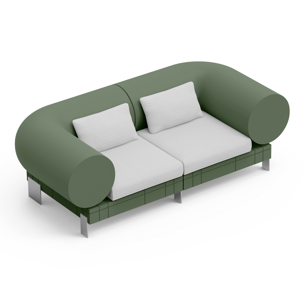 Această canapea contemporană combină confortul și designul modern într-o piesă de mobilier care atrage atenția. Caracterizată prin linii curate și o formă inovatoare cu cilindri laterali, canapeaua oferă o notă de stil unic și funcțional . Paleta sa de culori introduce un element de luminozitate si prospetime in fiecare spatiu de locuit.
