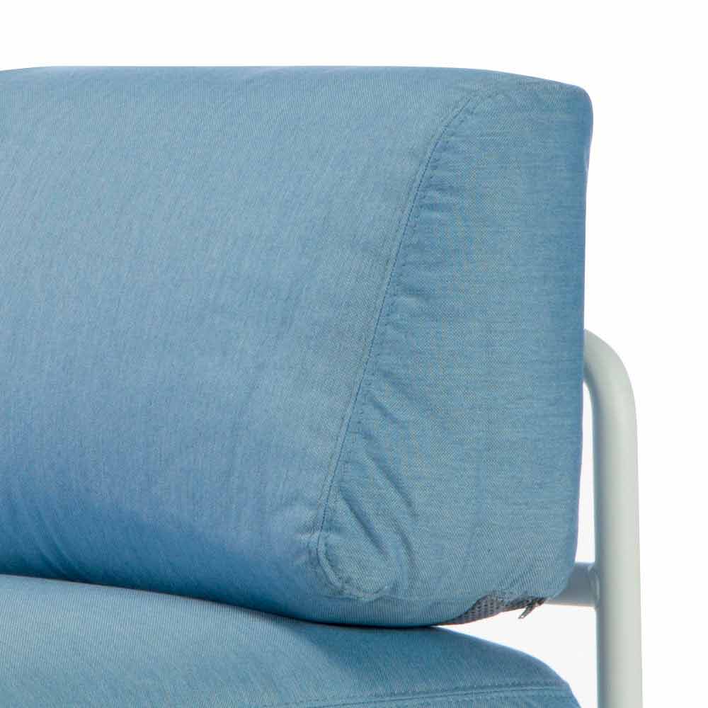 Canapea modulară de colț pentru exterior, din fier galvanizat vopsit în câmp electrostatic și material textil de design, fabricată în Italia.