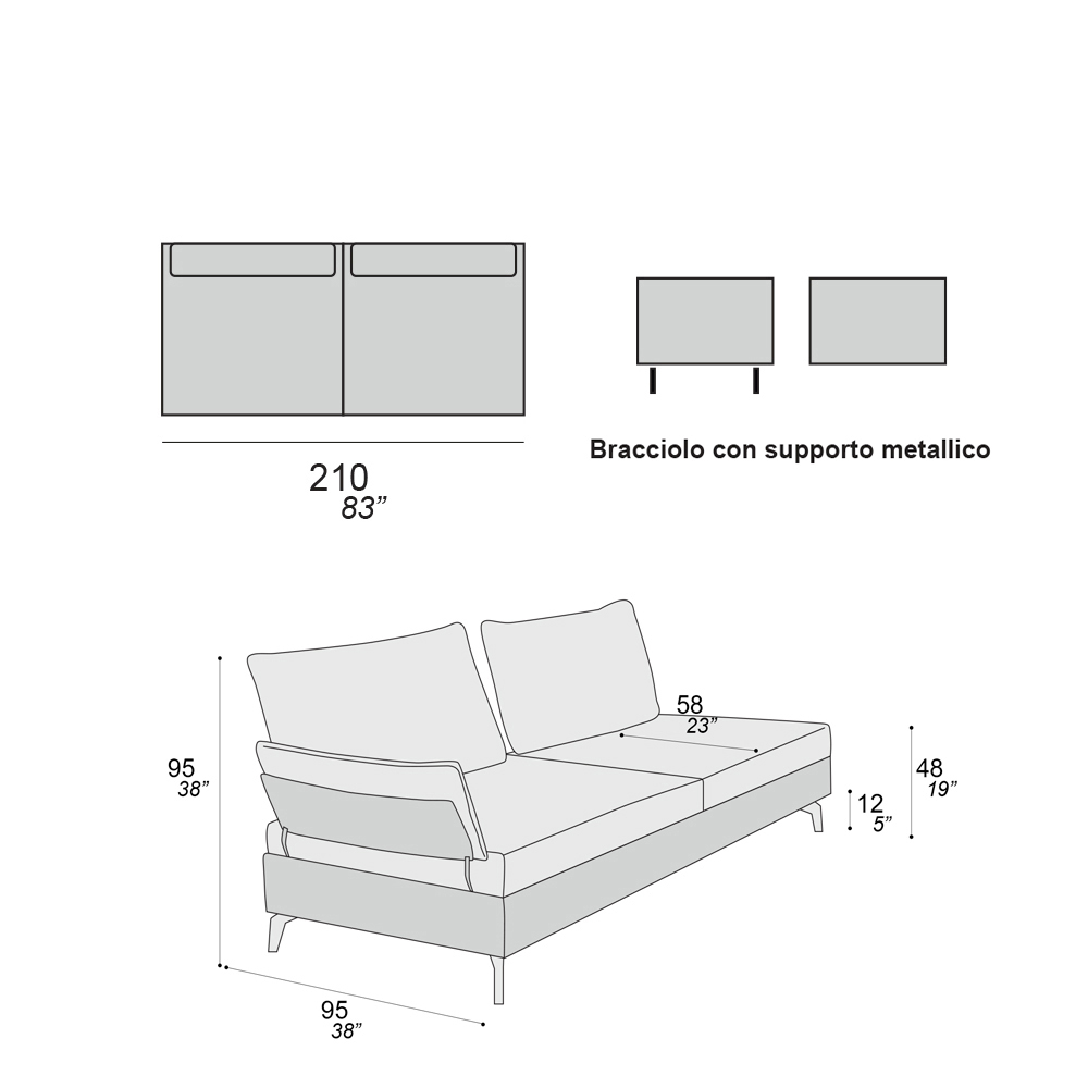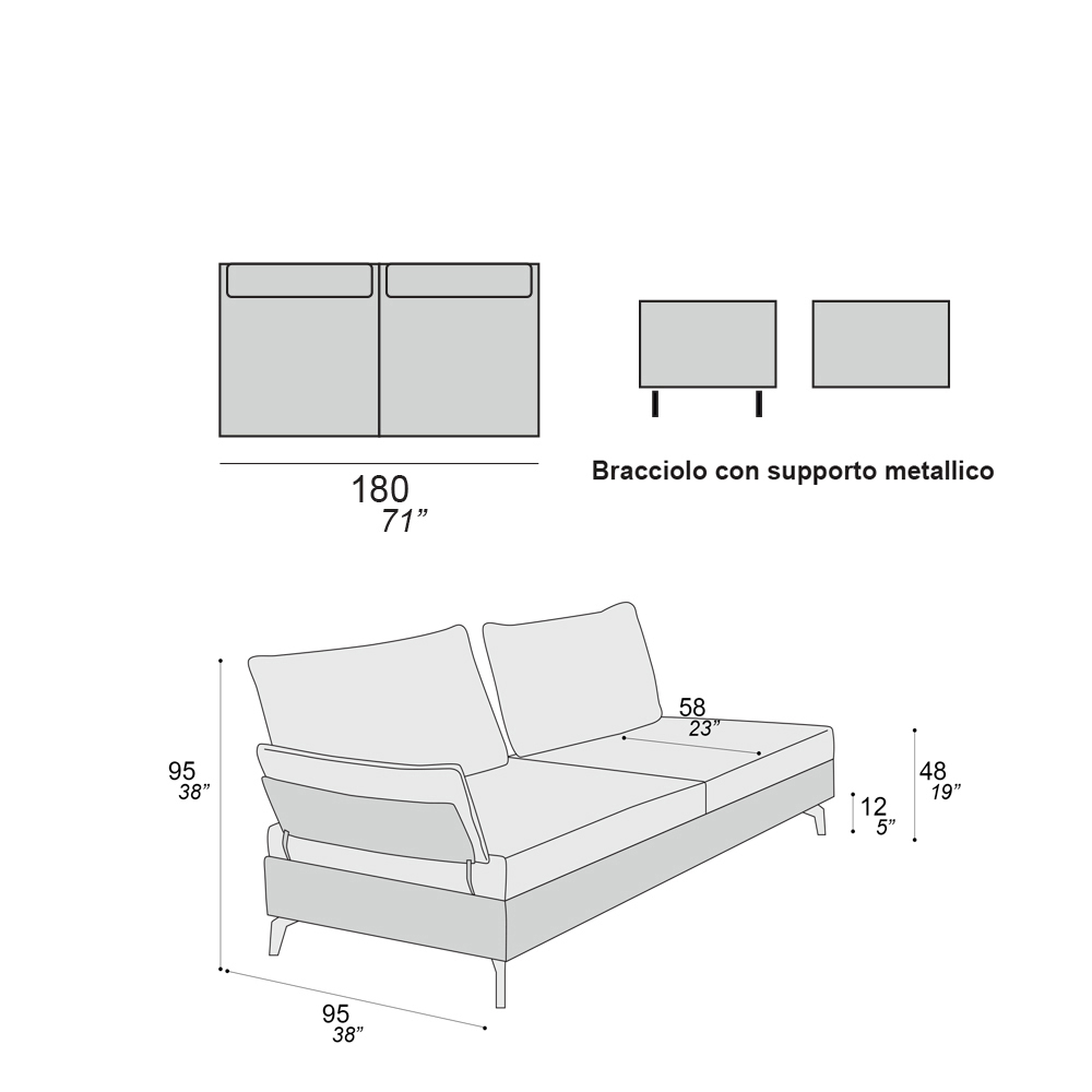 suport metalic. Canapeaua a fost concepută pentru a încuraja conversațiile bune cu prietenii și familia. Linearitatea și versatilitatea inconfundabile, împreună cu învelișurile colorate sau mai riguroase, o fac potrivită pentru orice ocazie, aproape ca o rochie care trece de la formal la informal prin simpla variație a compoziției alese.
