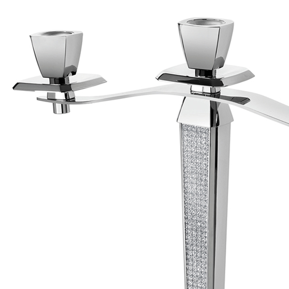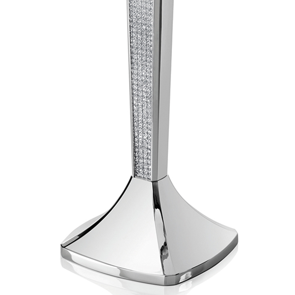 Această candelabră elegantă și luxoasă cu 3 flăcări este realizată în întregime din metal argintiu înfrumusețat cu decorațiuni cu sclipici care îi conferă un aspect ilustru, distins și rafinat.