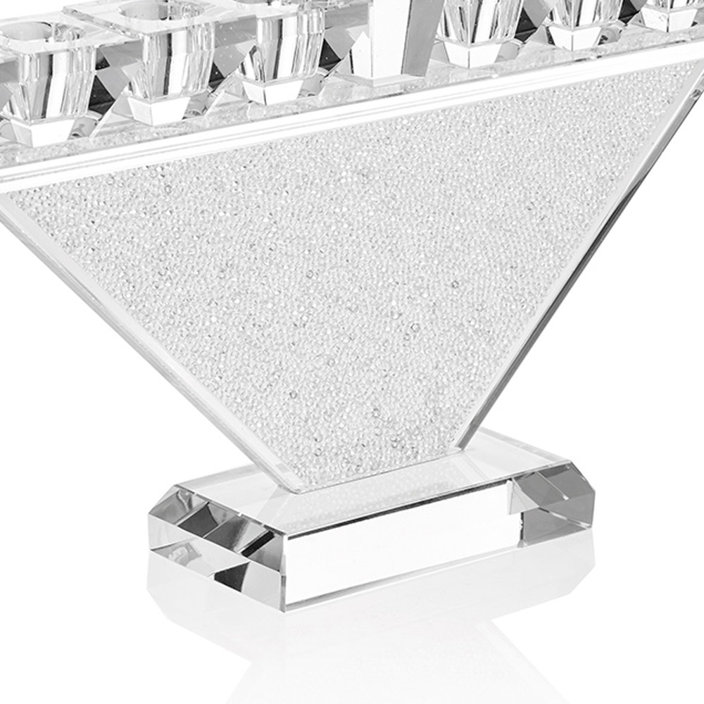 Această candelabră elegantă și luxoasă cu 9 flăcări este realizată în întregime din cristal înfrumusețat cu decorațiuni din stras care îi conferă un aspect ilustru, unic și rafinat.