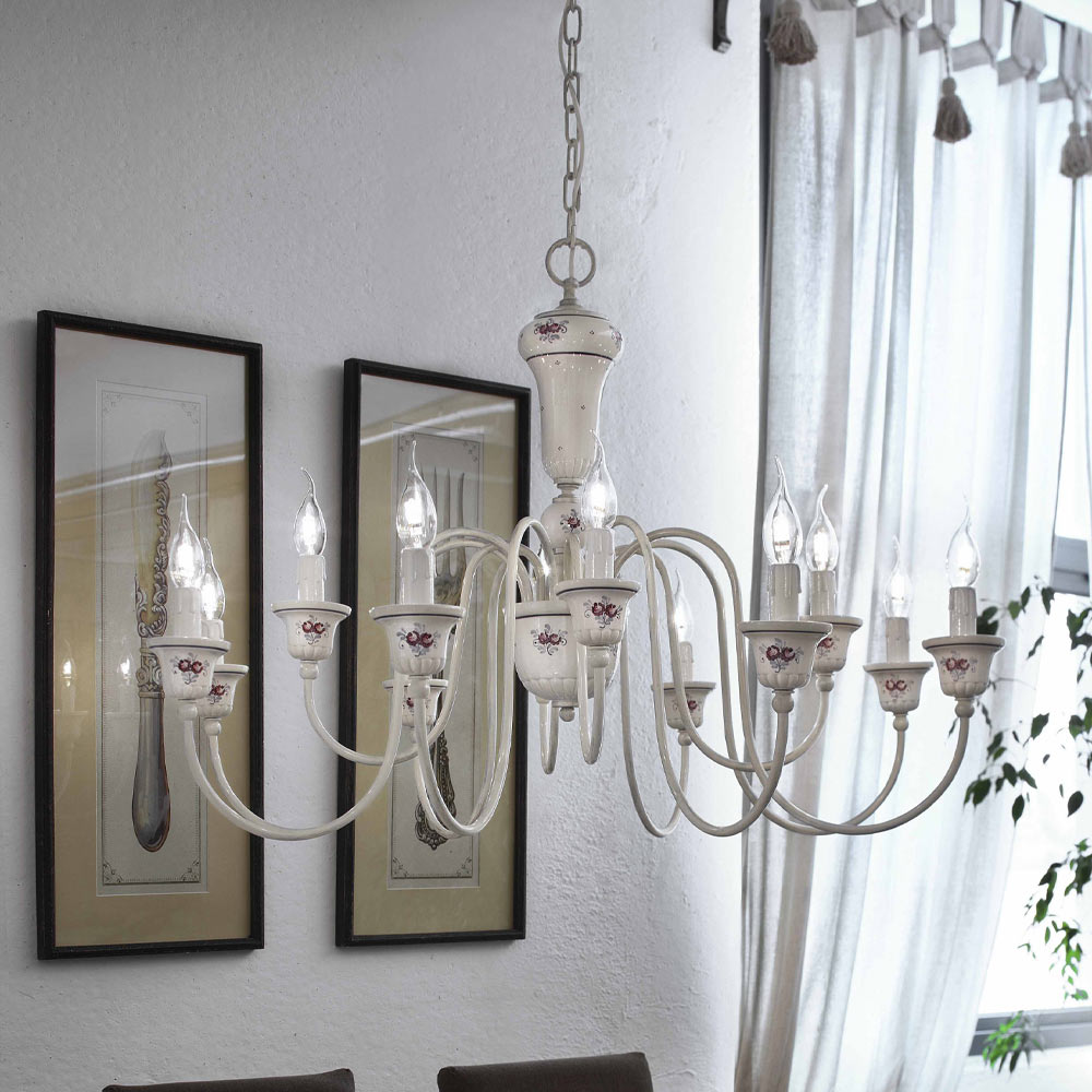 Acest candelabru cu 12 lumini este realizat în întregime manual din alamă pictată și ceramică, cu decor floral pictat manual , pentru a evidenția măiestria și abilitățile manuale ale artizanilor.