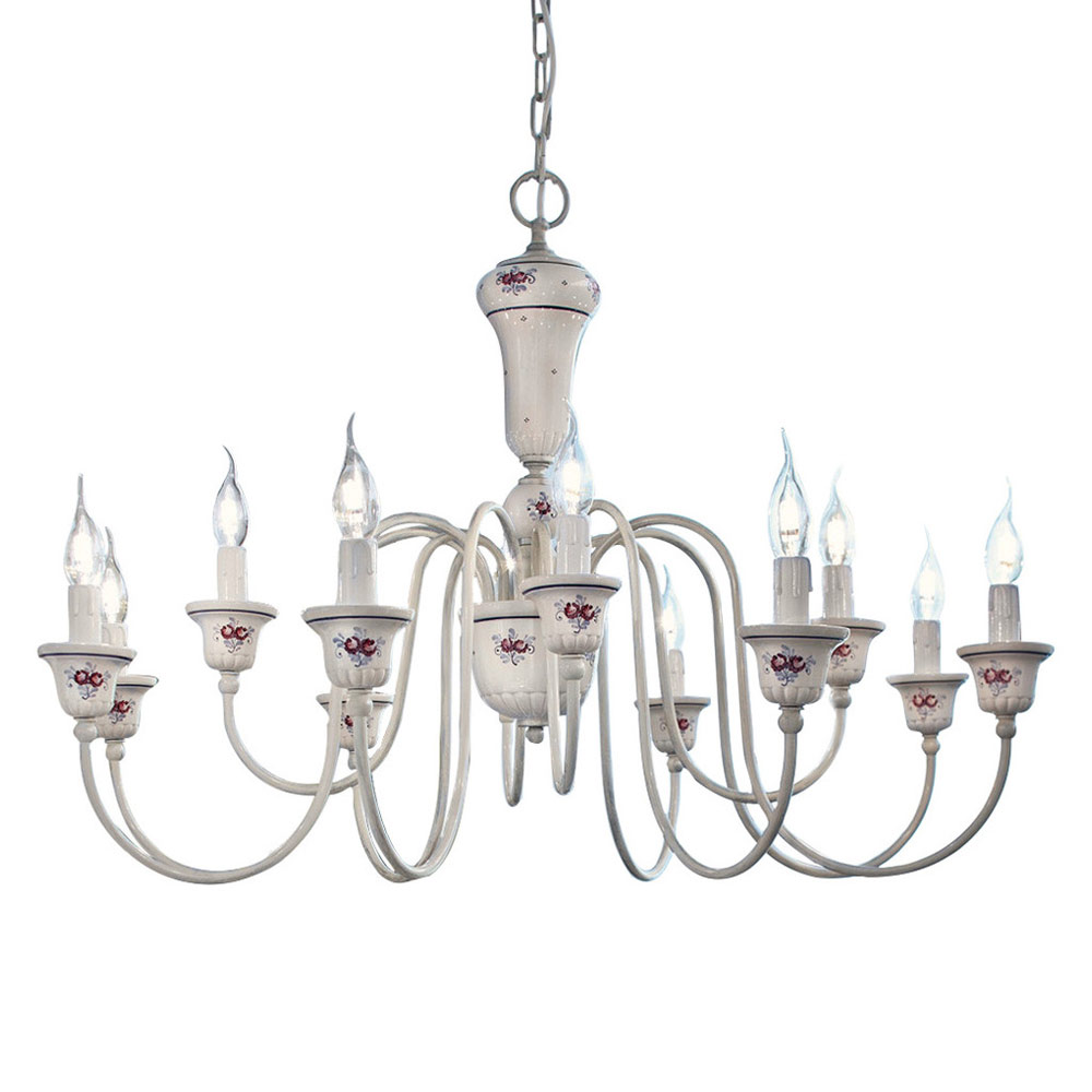 Candelabru din alamă cu 12 lămpi realizat manual și din ceramică pictat manual, fabricat în Italia de Ferroluce.
