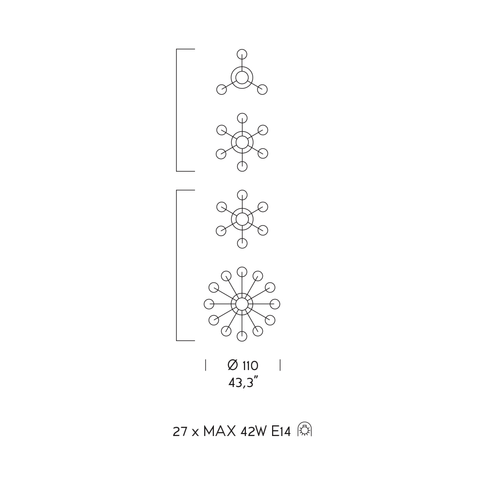 Becuri (nu sunt incluse) : 27 x MAX 42W E14