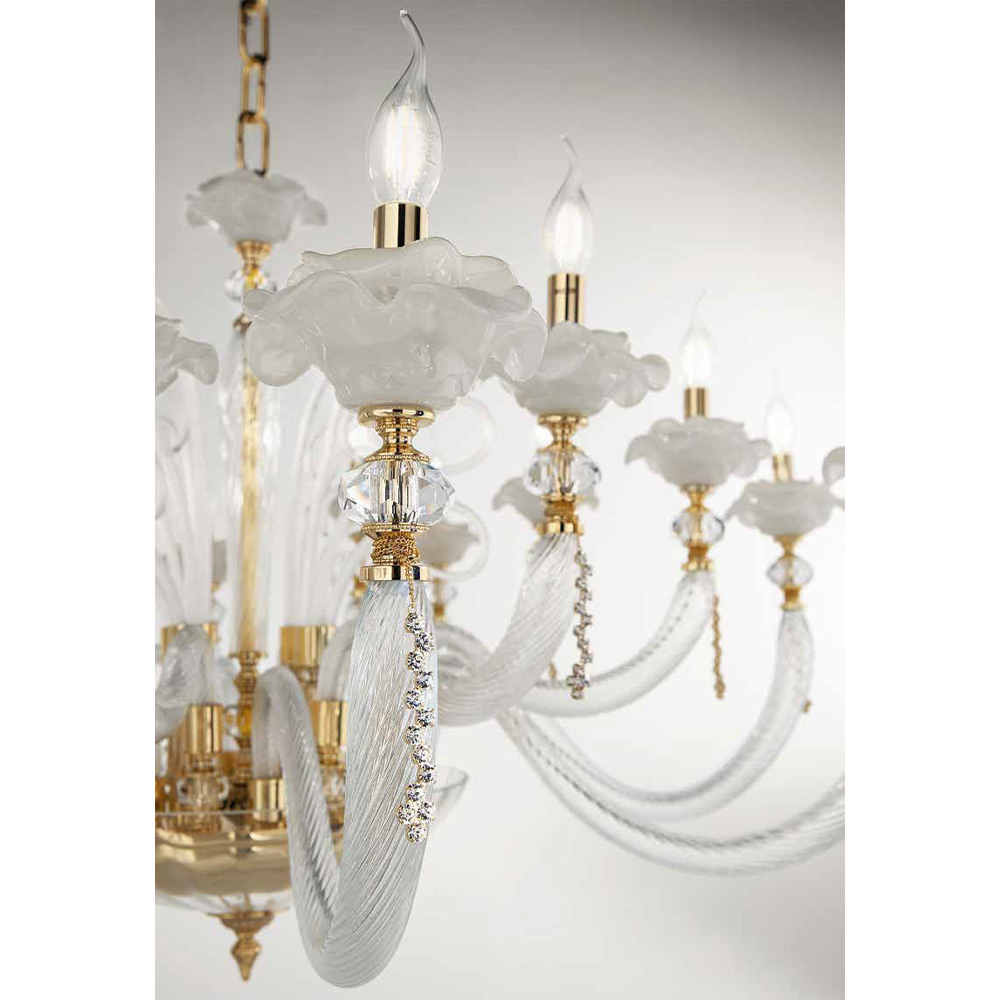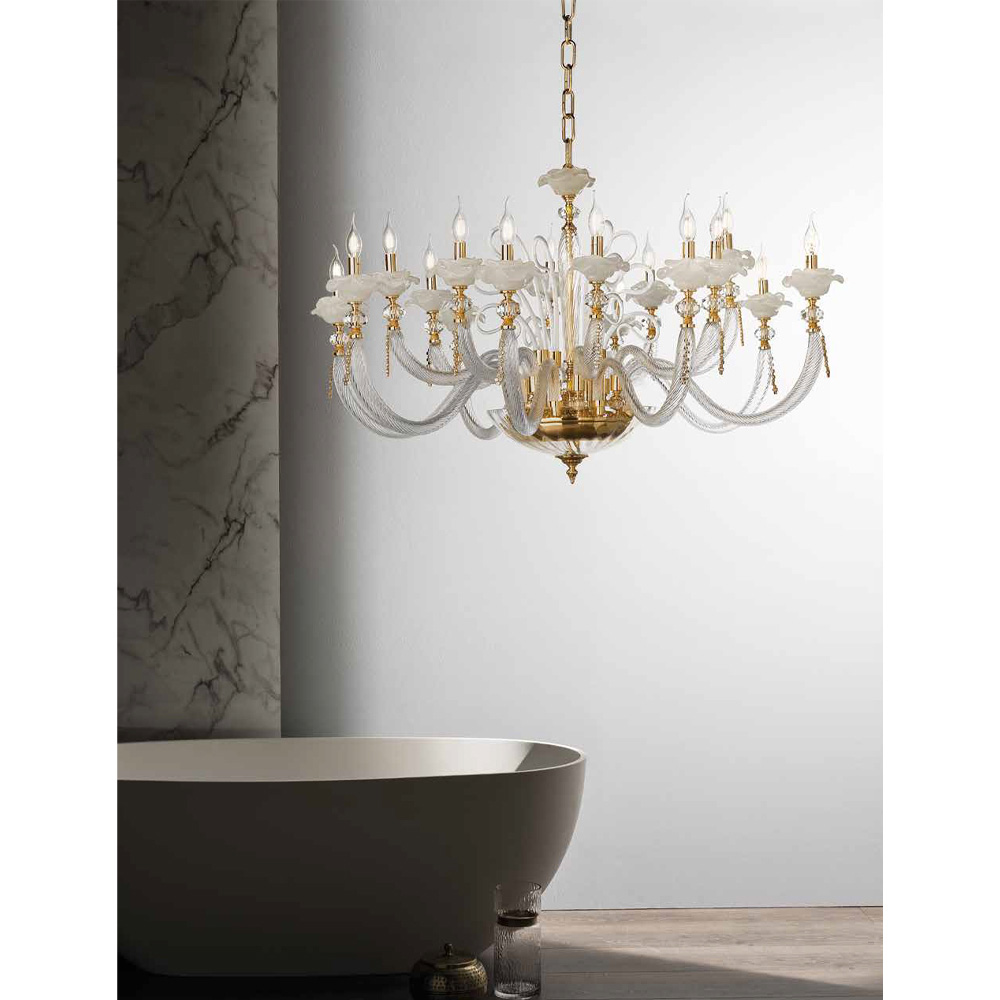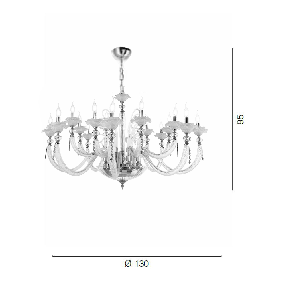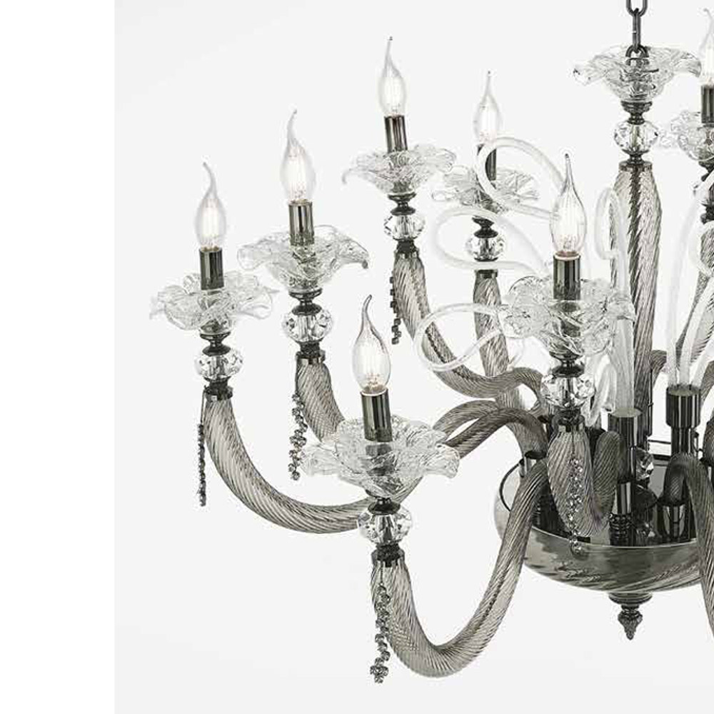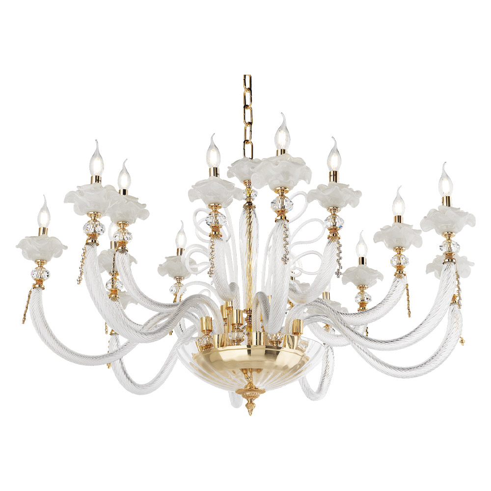 Candelabru realizat manual cu 16 lumini din sticla suflata si decoratiuni florale, lux italian.
