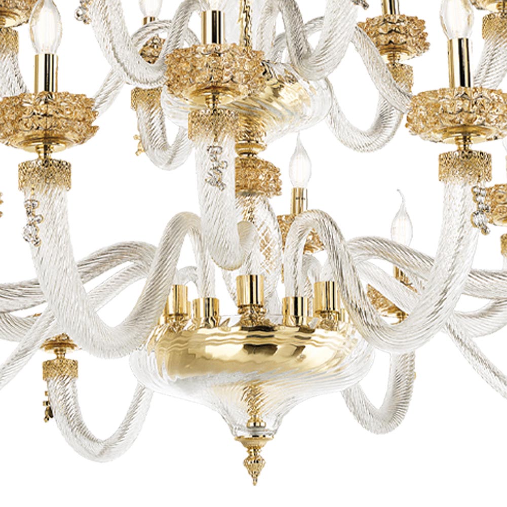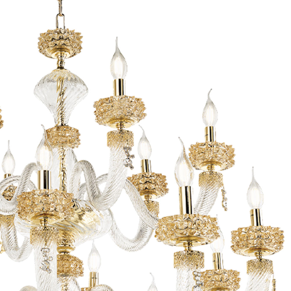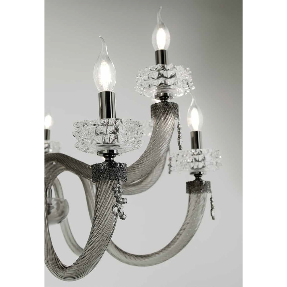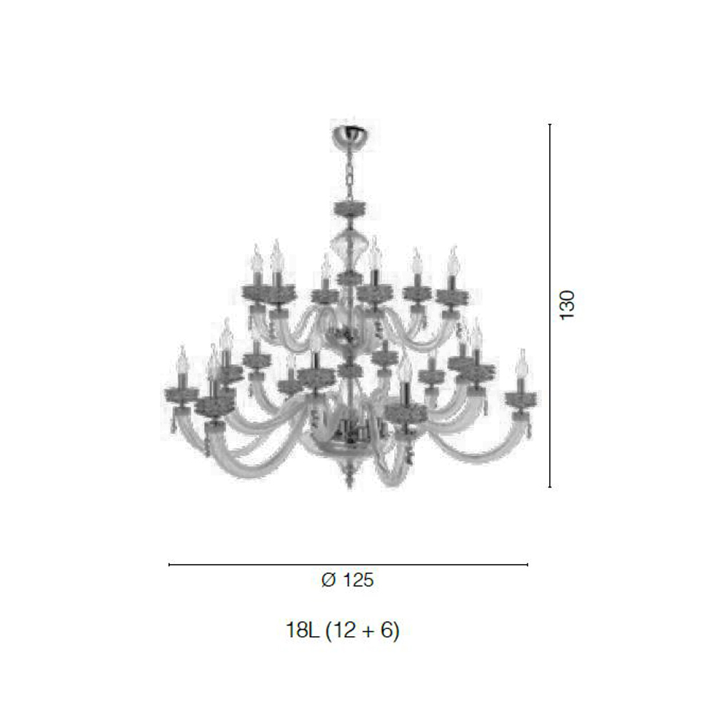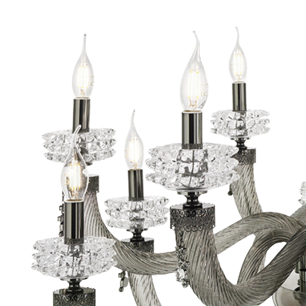 Candelabru cu 18 lumini din sticlă și metal lucrate manual, design italian de lux.