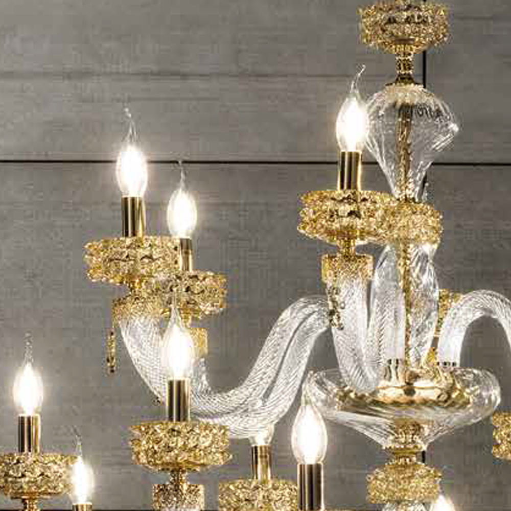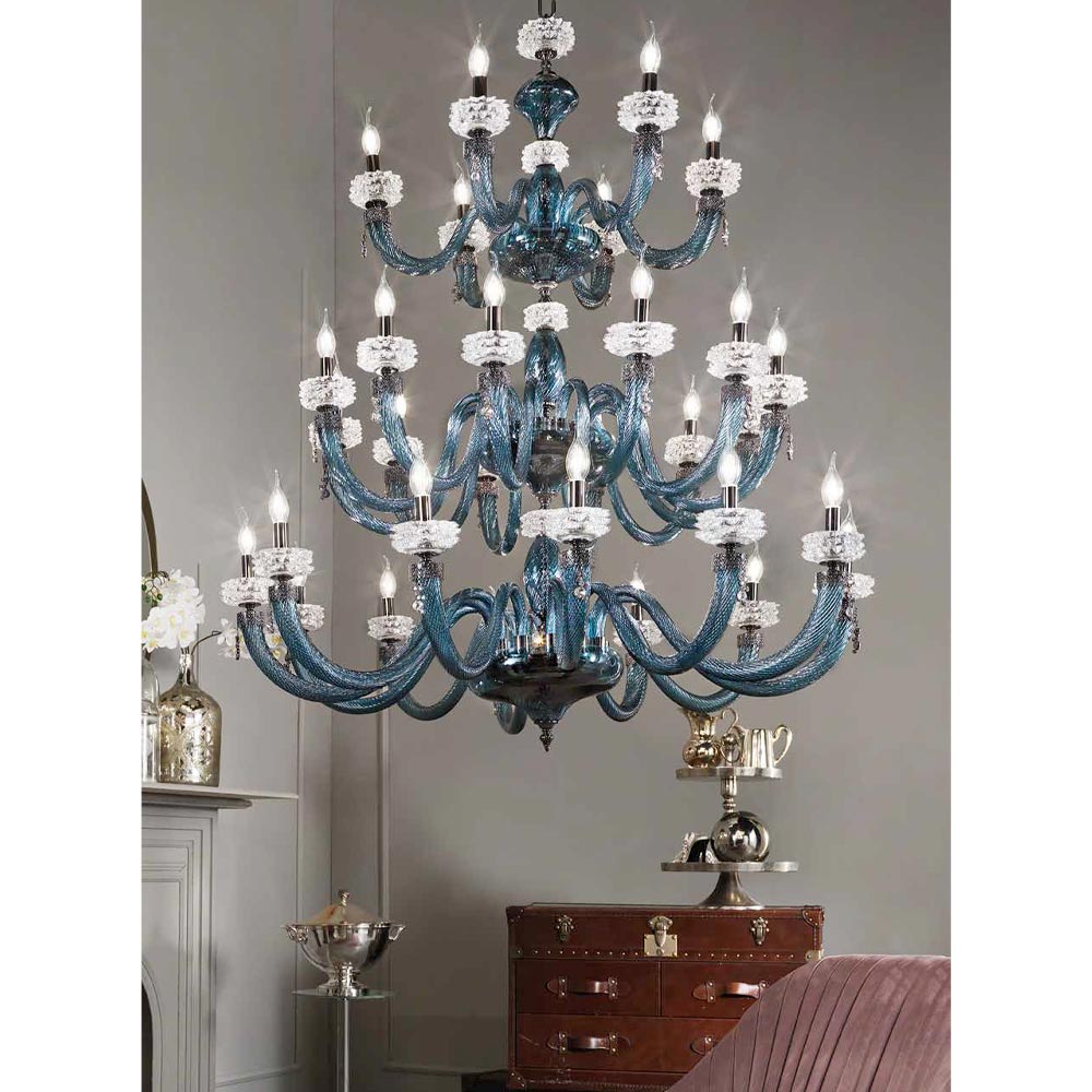 Candelabru cu 30 de lumini din sticlă și metal lucrate manual, design italian de lux.