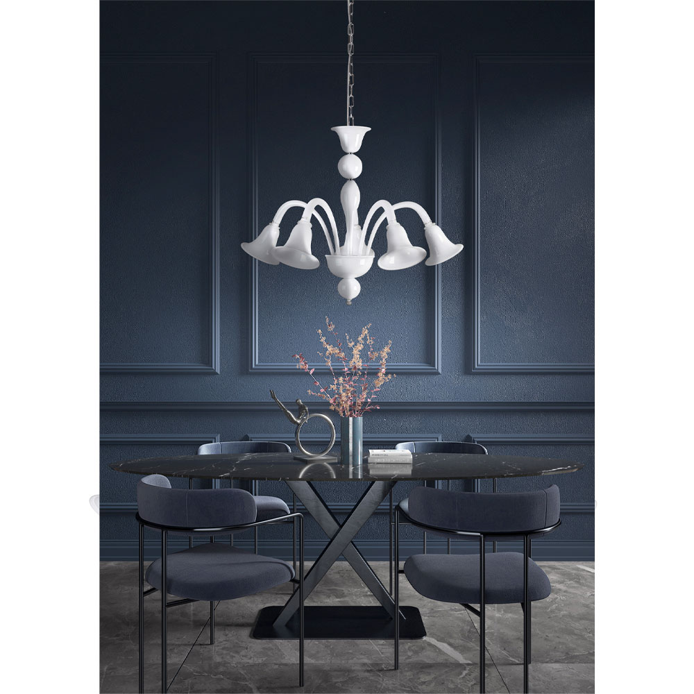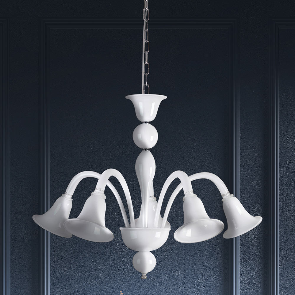 sticlă albă venețiană suflată manual, caracterizată prin forme moi și linii armonioase care dau viață luminilor cu eleganță rafinată și personalitate deosebită.