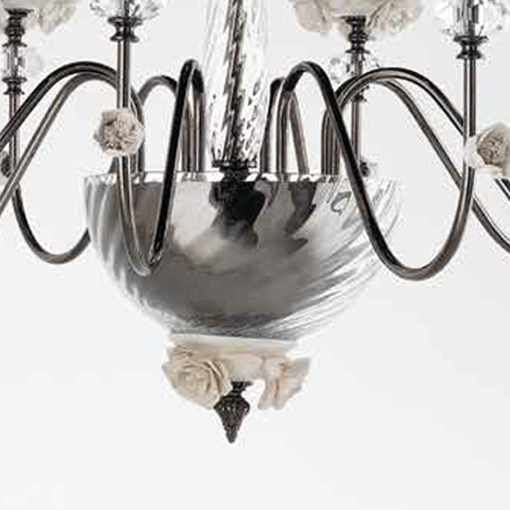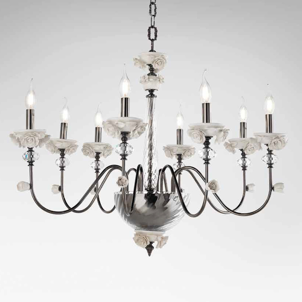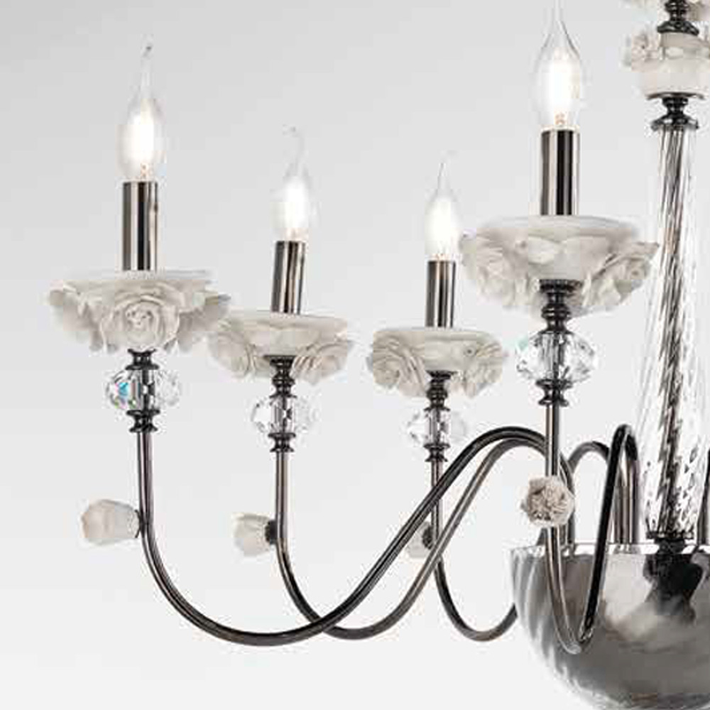 Candelabru cu 8 lumini din portelan si sticla suflata, lux made in Italy.