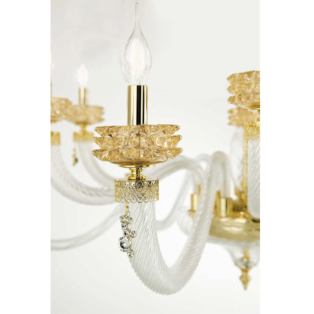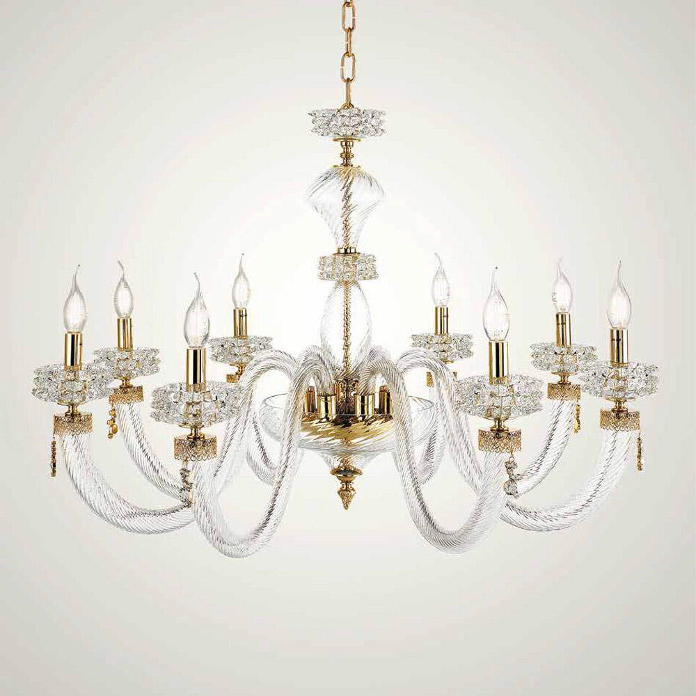 Candelabru cu 8 lumini din sticlă și metal lucrate manual, design italian de lux.