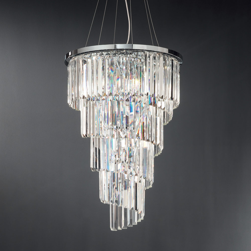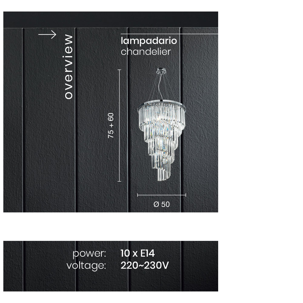 Disponibil în două dimensiuni diferite, constă dintr-o structură metalică cromată și suspensie cu cabluri de oțel cu lungime reglabilă.