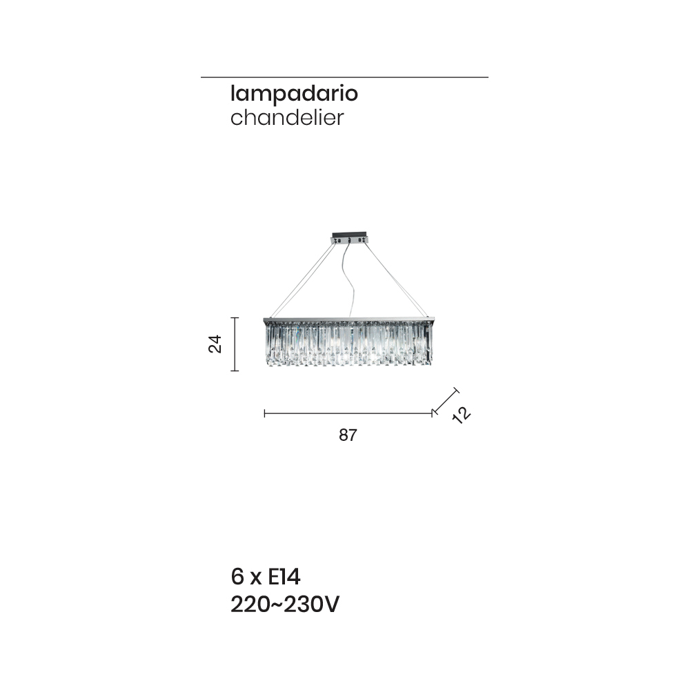 Disponibil în două dimensiuni diferite, constă dintr-o structură metalică cromată și suspensie cu cabluri de oțel cu lungime reglabilă.