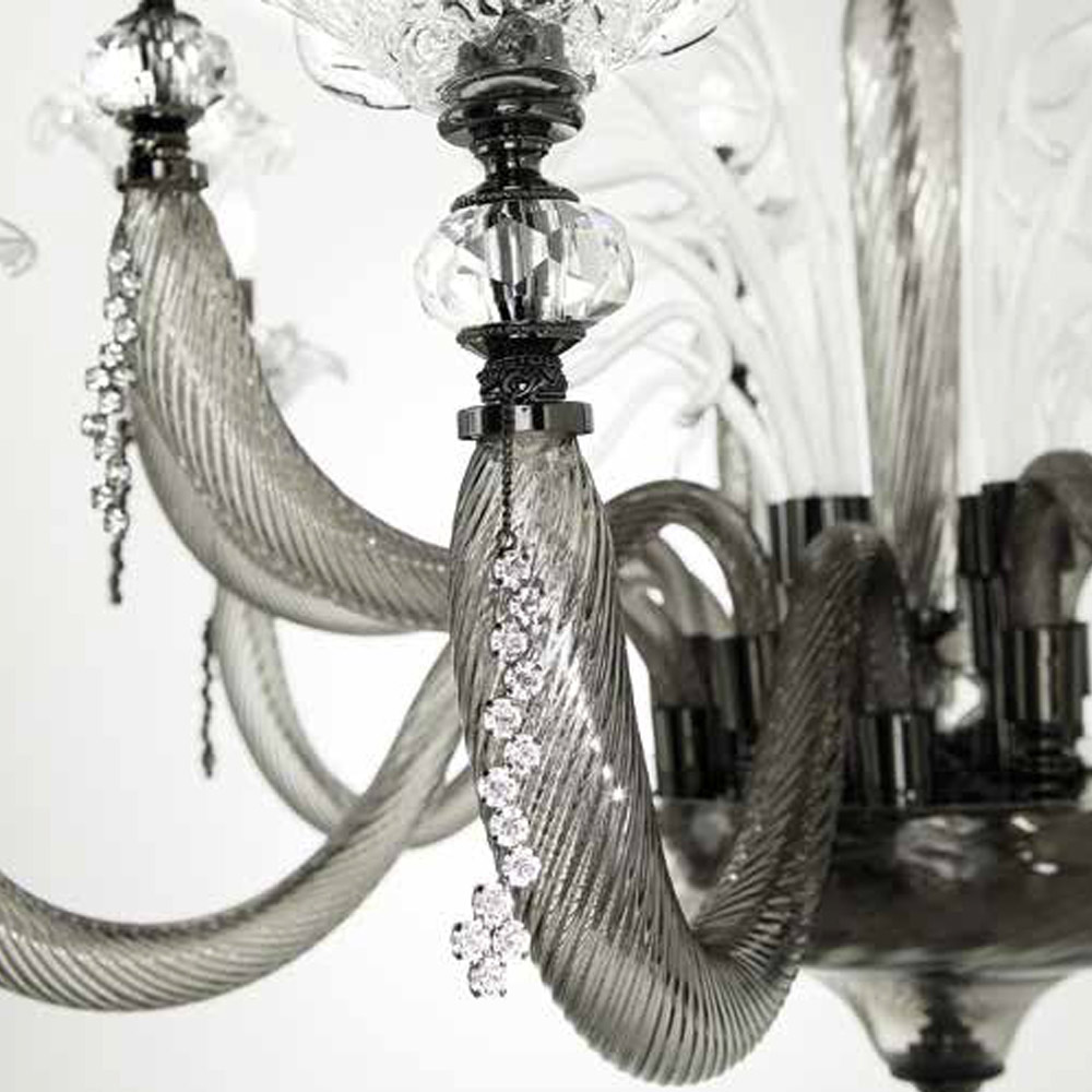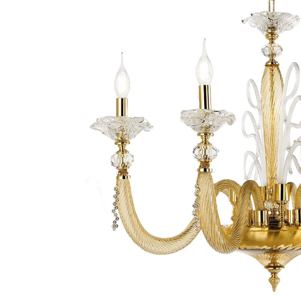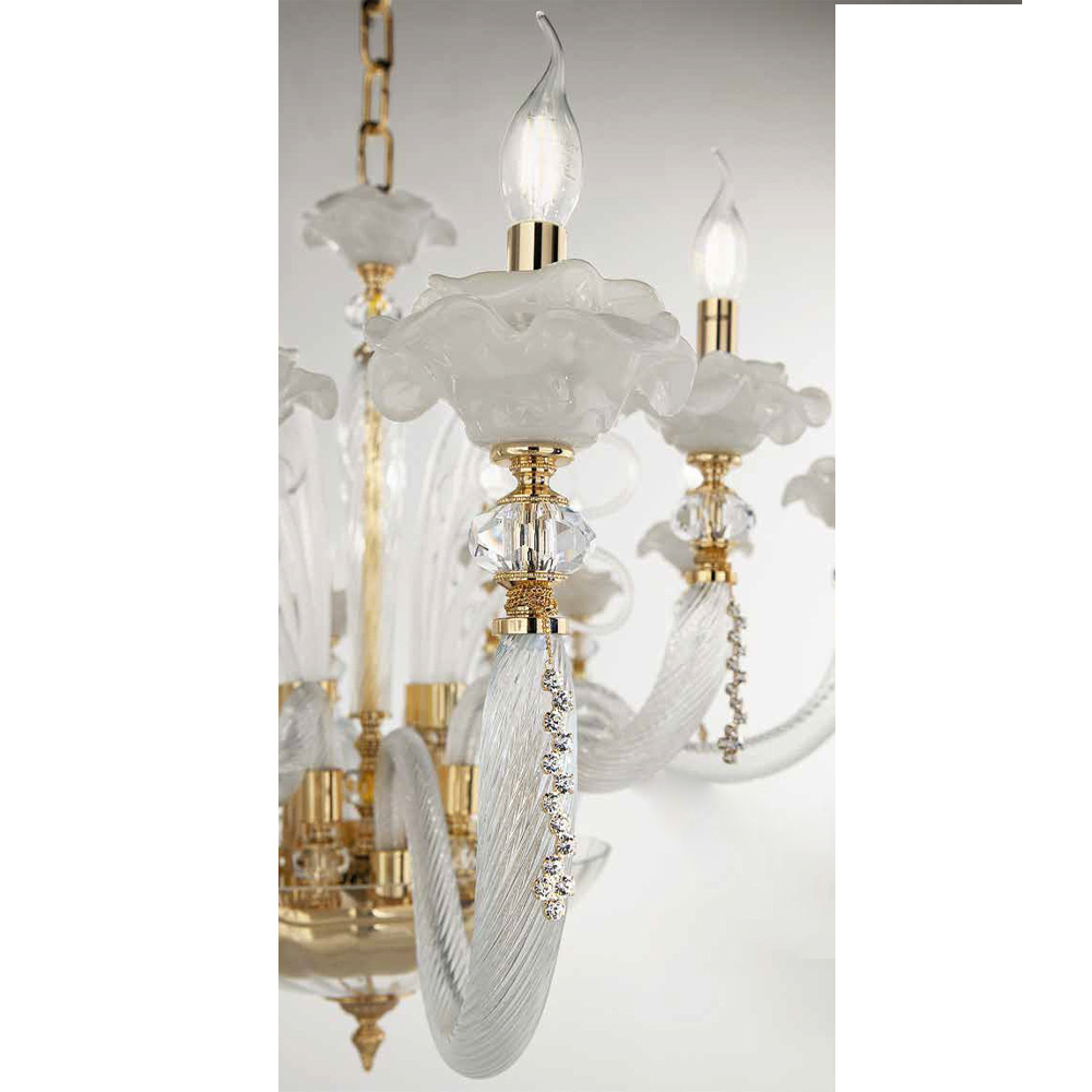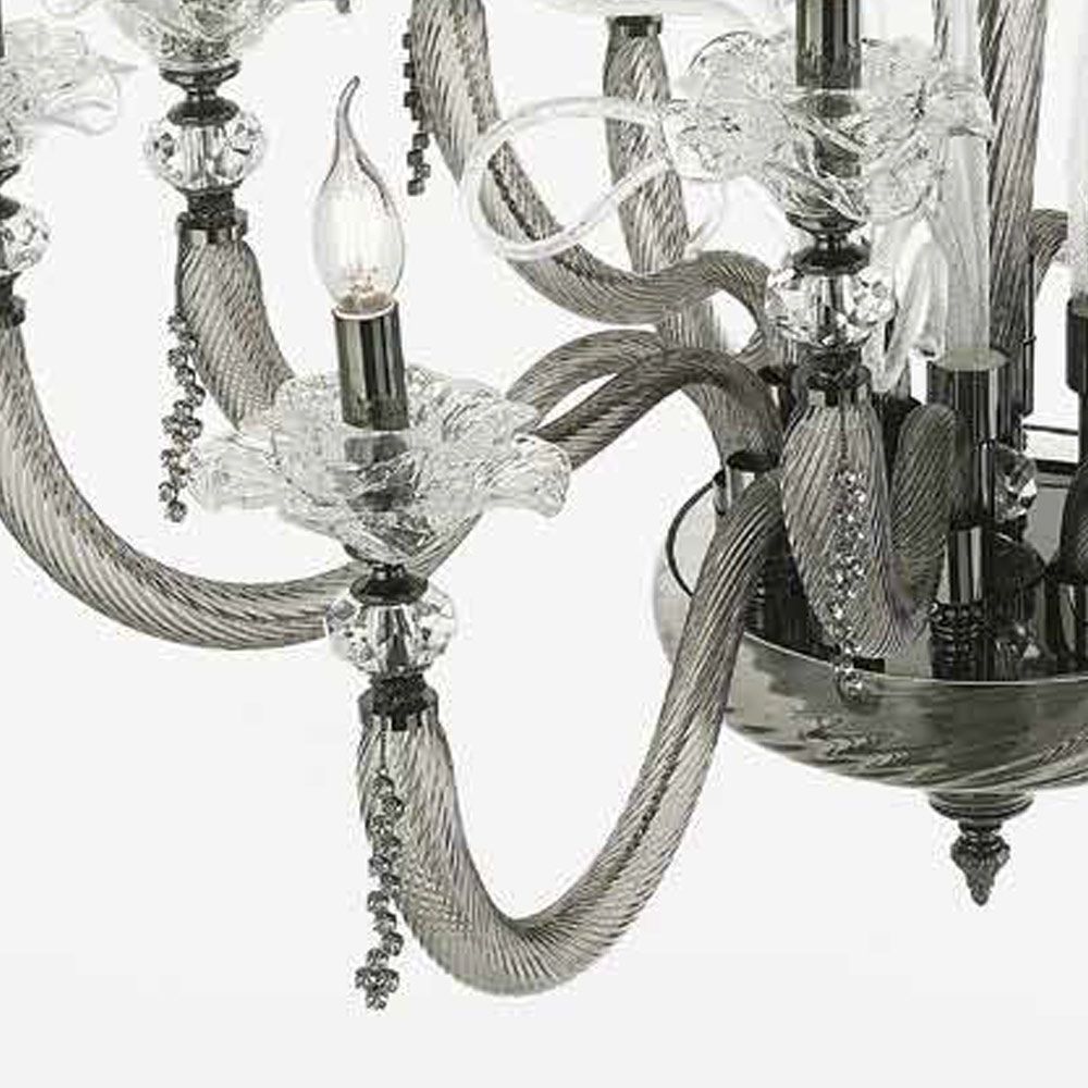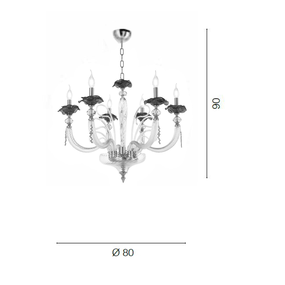 Candelabru cu 6 lumini realizat manual din sticla suflata si decoratiuni florale, lux italian.